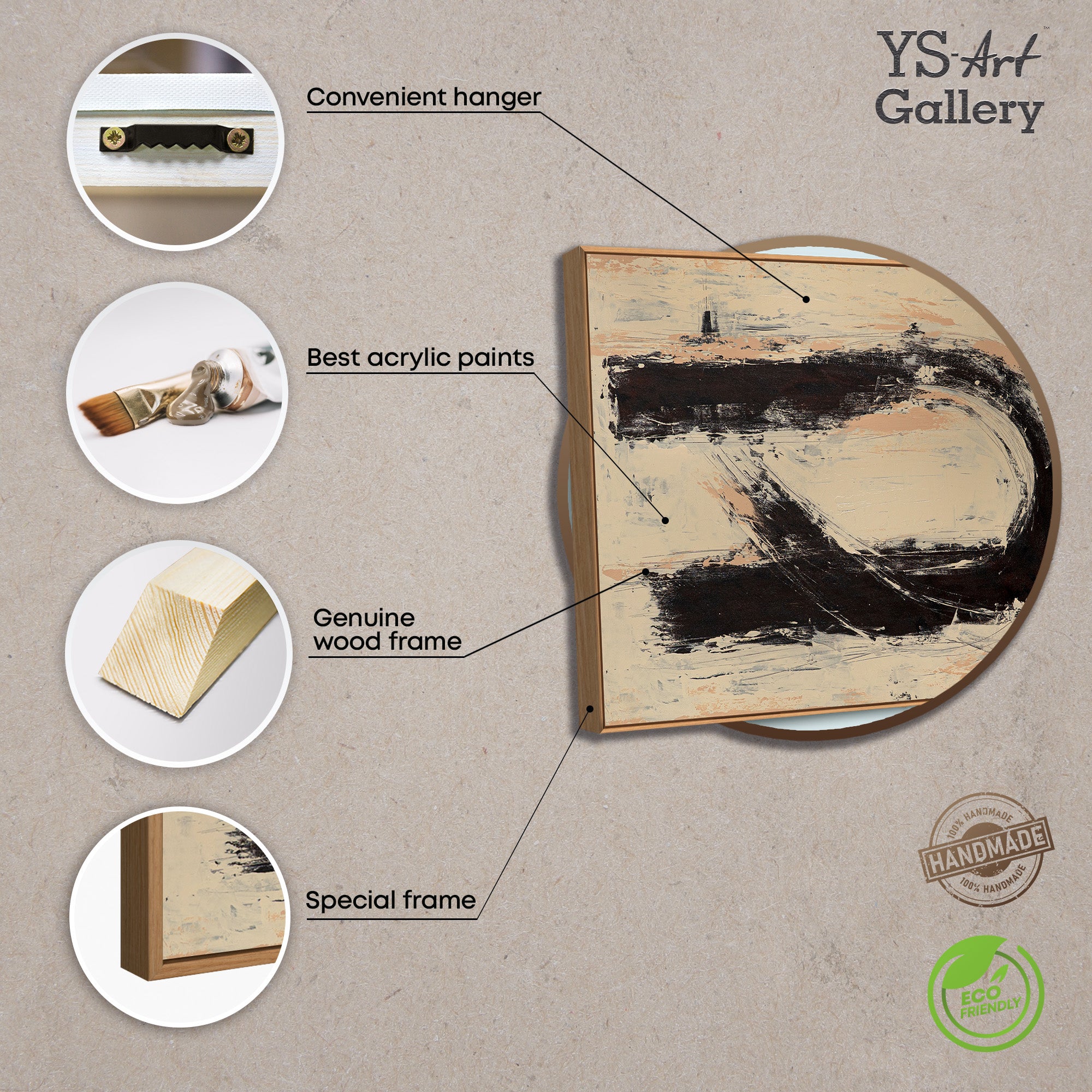 "Silence in Between" is a minimalist abstract acrylic painting that creates a captivating balance through bold black brushstrokes and calm, light areas. The flowing lines appear spontaneous yet controlled, while the soft beige and cream tones lend the work depth and visual tranquility. The textured surface emphasizes the hand-painted character of this acrylic painting.