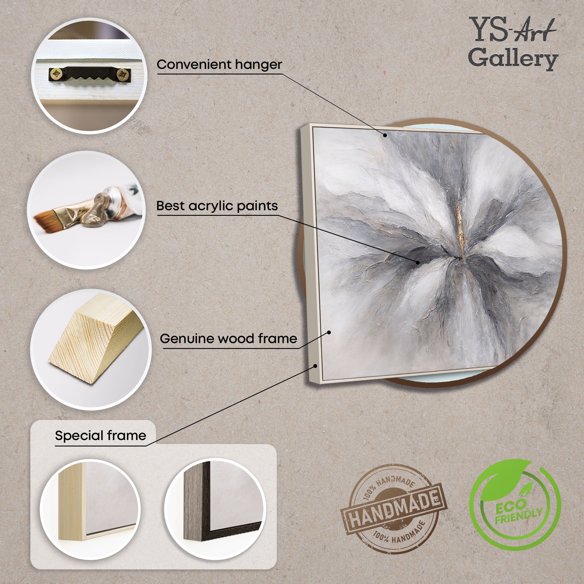 • Acrylmalerei Reliefdetail grau gold elegant