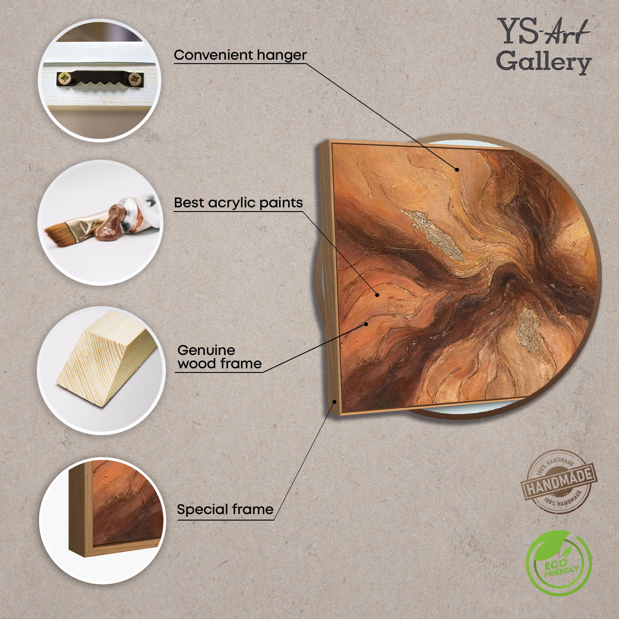 • Handgemaltes Gemälde in warmen Erdtönen – moderne Leinwandkunst mit Rahmen „Bernsteinfarbene Ströme“