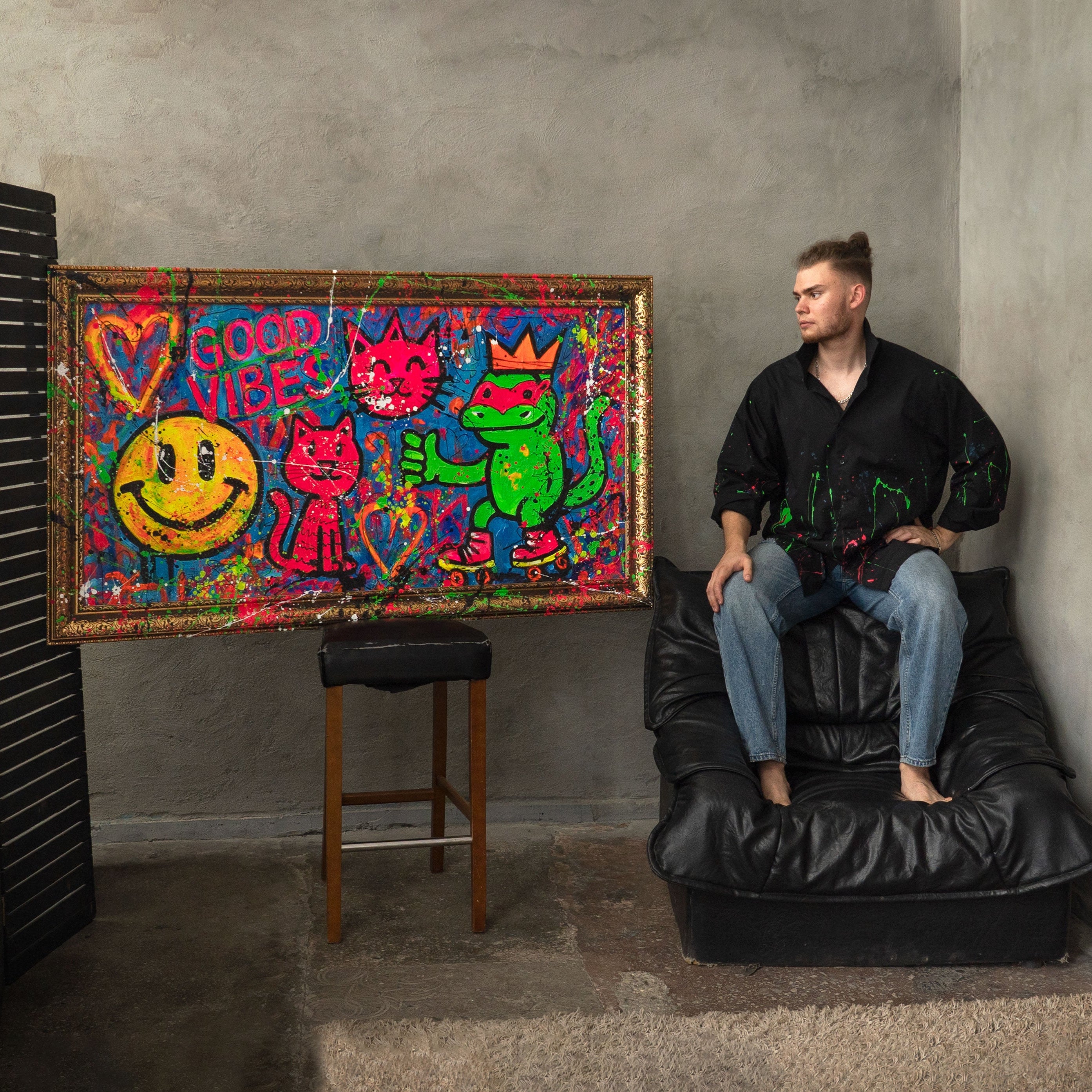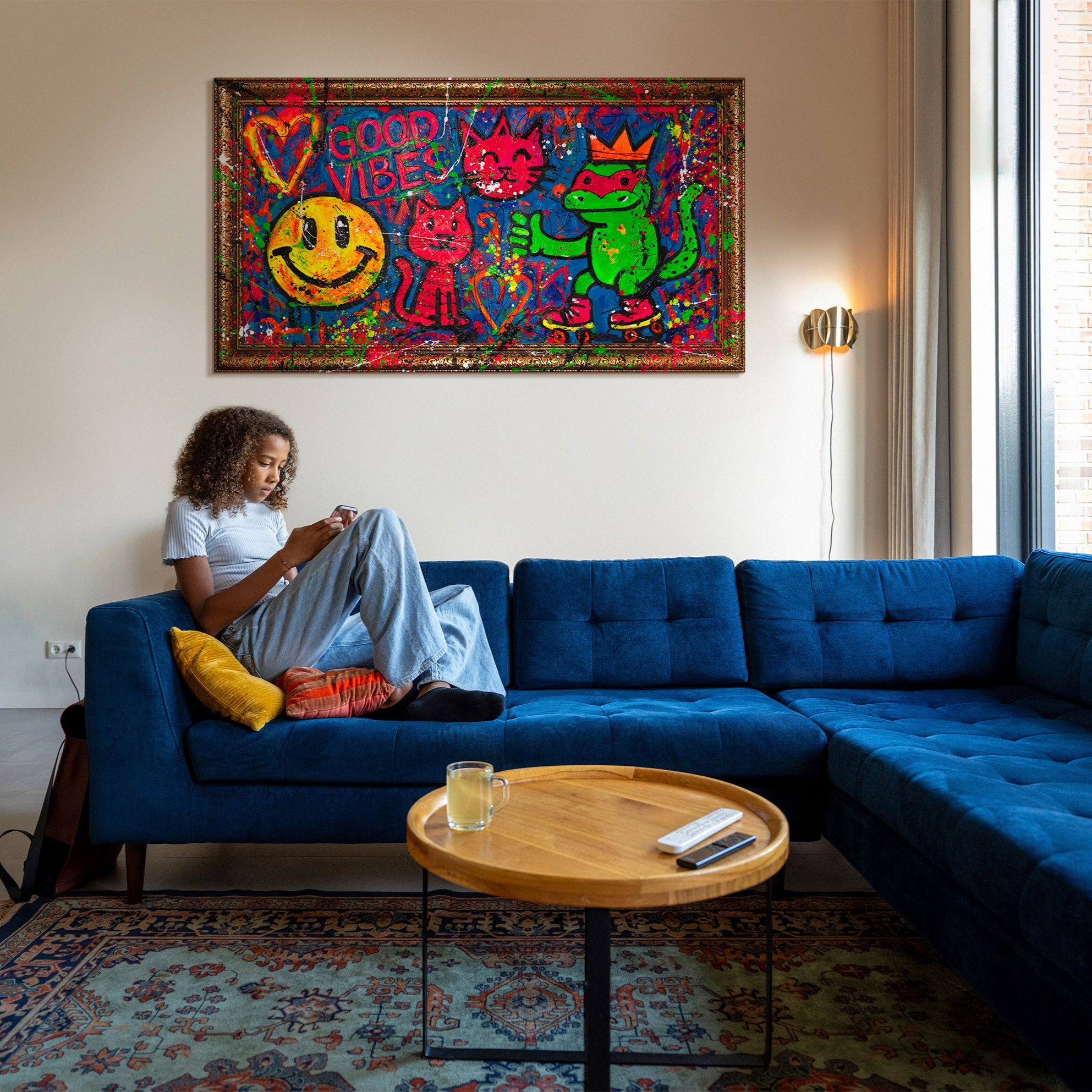 Perfect for anyone looking for modern living room wall decor, unique Pop Art paintings, or lively graffiti artworks. Every detail is hand-painted – a true one-of-a-kind piece full of movement and urban lifestyle.
