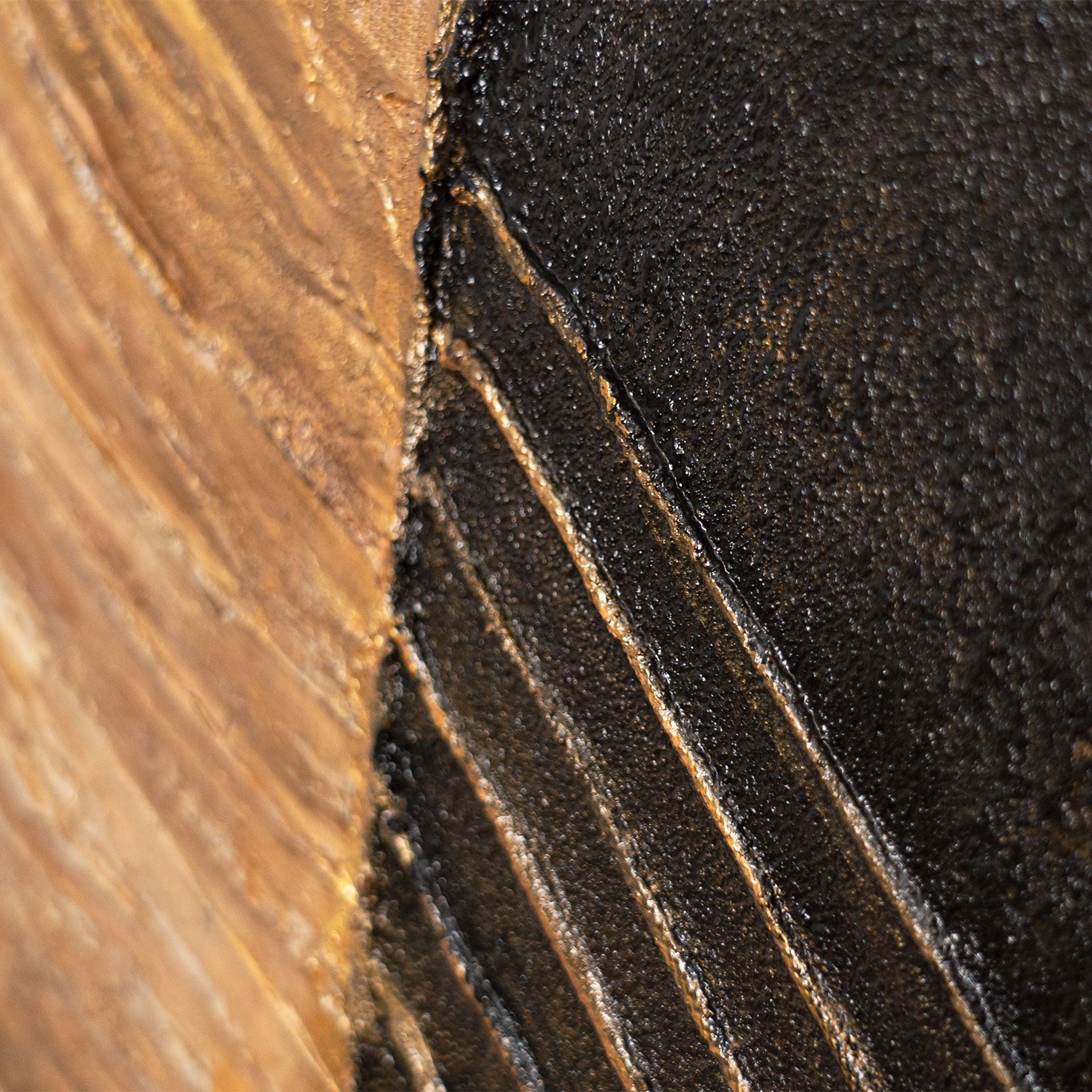 „Natürliche Ornamente“ ist ein handgemaltes abstraktes Gemälde mit ausgeprägter Materialstruktur und klar gegliederten Flächen. Warme Beige-, Sand- und Brauntöne treffen auf kontrastierende dunkle Elemente und feine lineare Strukturen, die an natürliche Oberflächen und organische Muster erinnern.