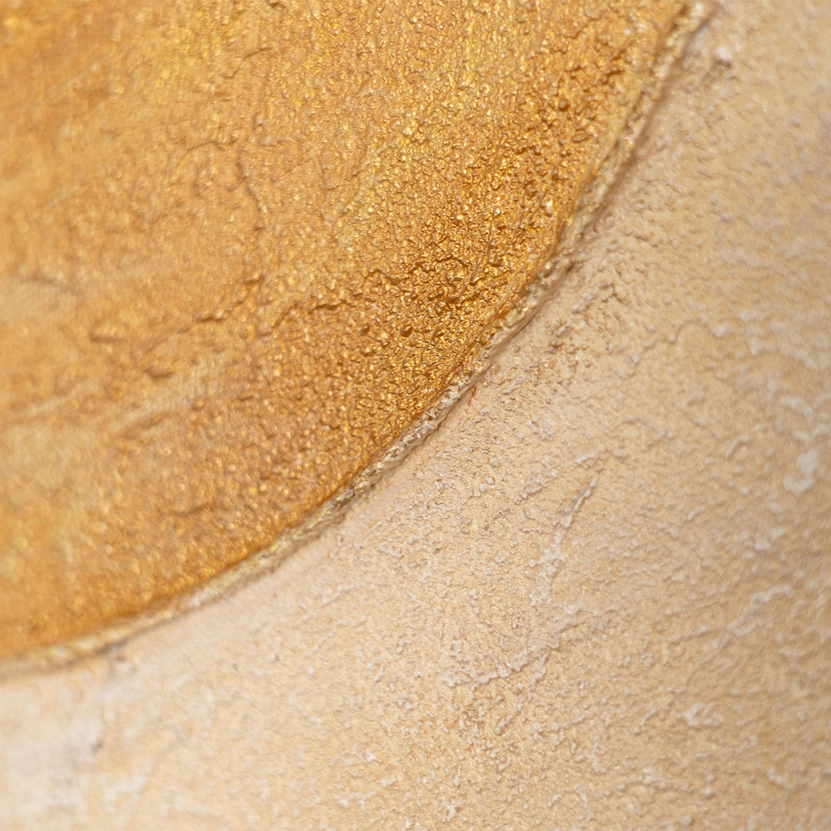 „Form und Textur“ ist ein handgemaltes abstraktes Gemälde, das geometrische Formen mit ausgeprägter Oberflächenstruktur kombiniert. Klare Flächen in Beige-, Sand- und Schwarztönen werden durch goldene Akzente und reliefartige Linien ergänzt, wodurch eine ruhige, architektonische Bildwirkung entsteht.