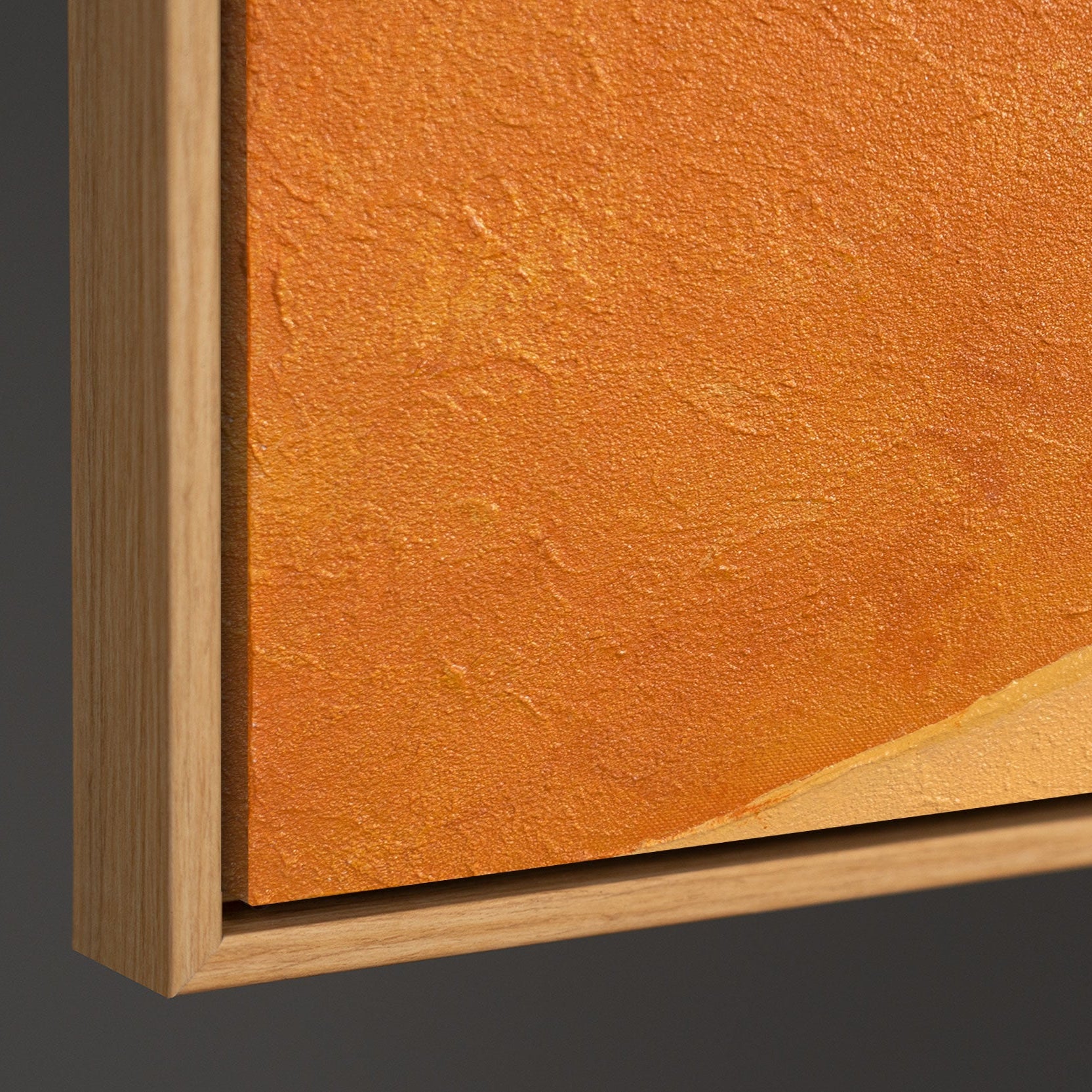This hand-painted canvas is presented framed and is suitable as modern wall art for a variety of interior design concepts. The balanced color scheme creates a bright, harmonious atmosphere and can be easily combined with contemporary furnishings without being overpowering.