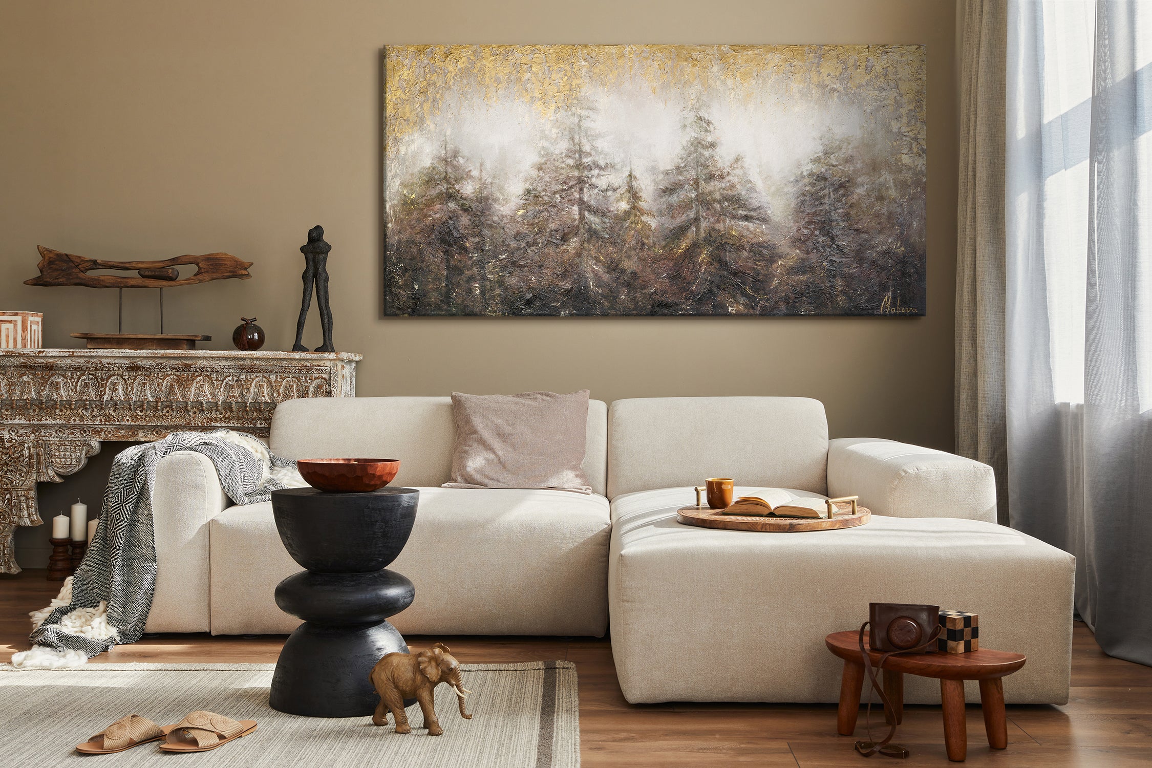 Das Gemälde eignet sich perfekt für Wohnzimmer, Schlafzimmer oder Büro und bringt Wärme und Stil in Ihr Zuhause.