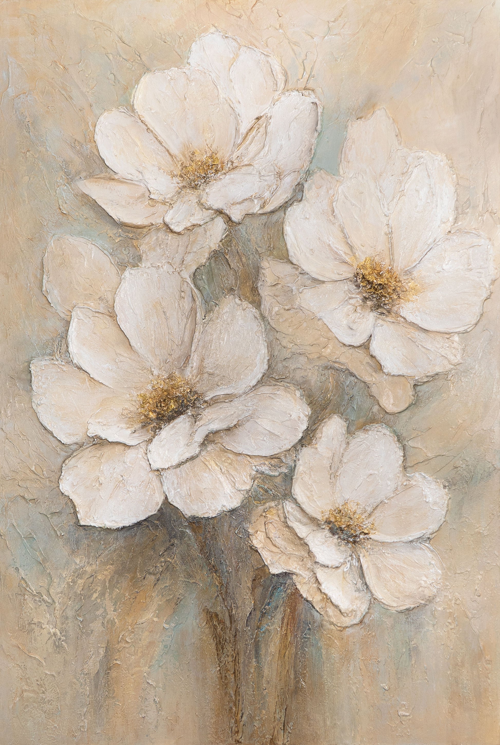 • Handgemaltes Leinwandbild Blumen beige