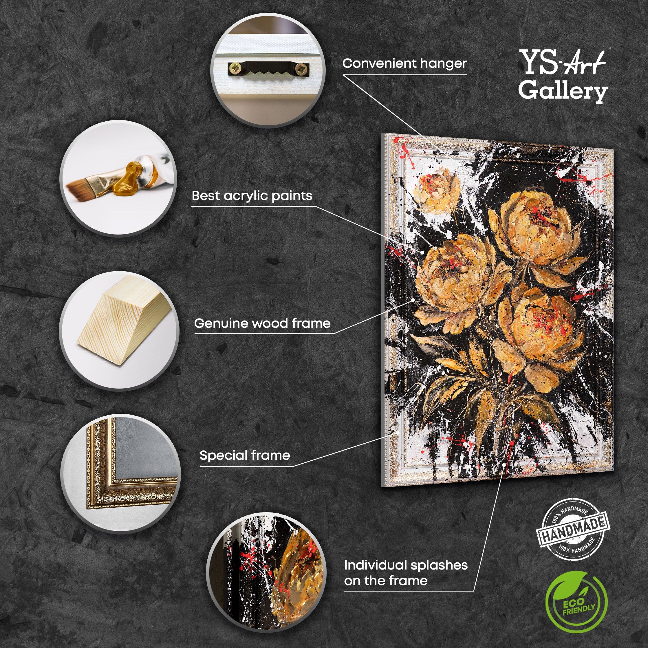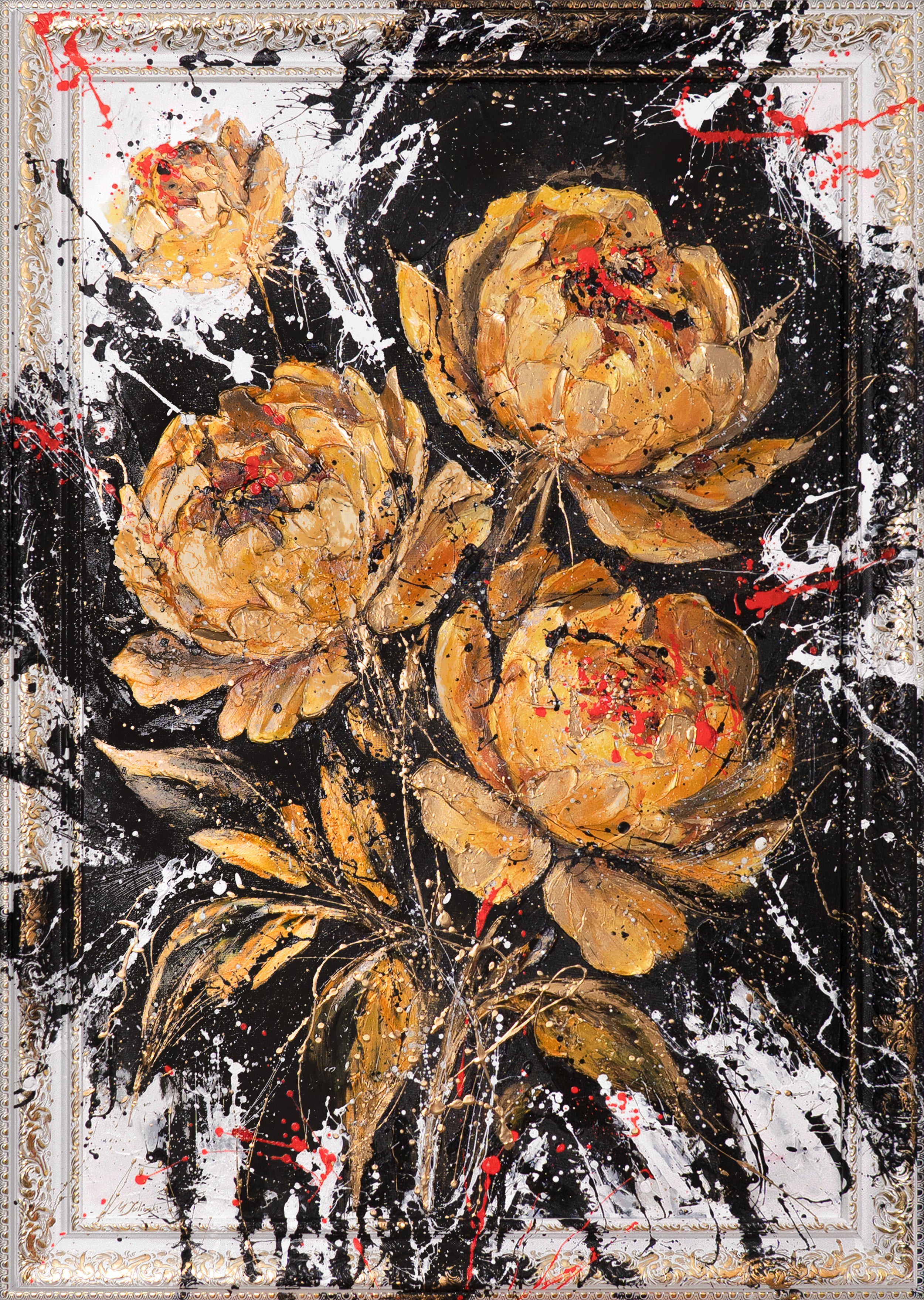 • Hand-Painted Acrylic Painting with Gold Flowers – Wall Art Decor „Velvety Shine“