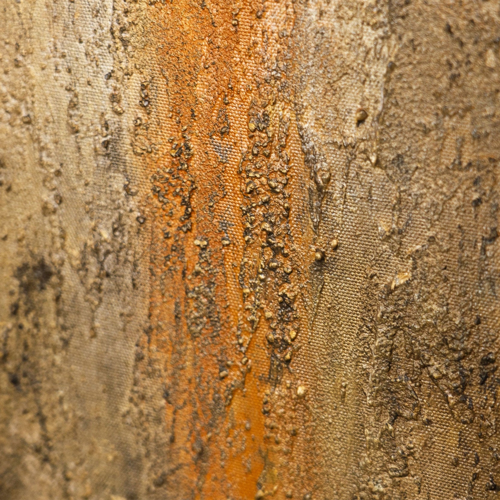 „Tiefe der Zeit“ ist ein kraftvolles, handgemaltes Acrylgemälde, das durch seine kontrastreiche Farbgebung und intensive Struktur besticht. Die Kombination aus tiefem Schwarz, warmen Brauntönen, edlem Gold und einem feinen Rotakzent erzeugt eine mystische und zugleich elegante Wirkung. Die reliefartige Oberfläche verleiht dem Werk Tiefe und Ausdruckskraft.