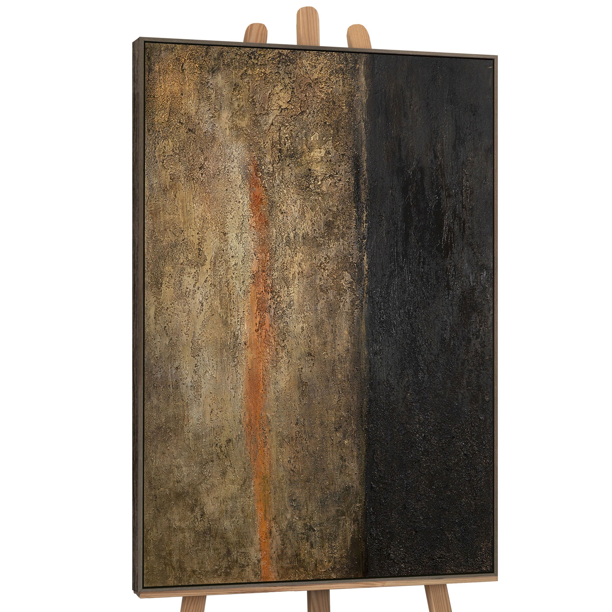 Leinwandbild mit Rahmen „Tiefe der Zeit“ – Abstraktes Acrylgemälde in Gold und Schwarz