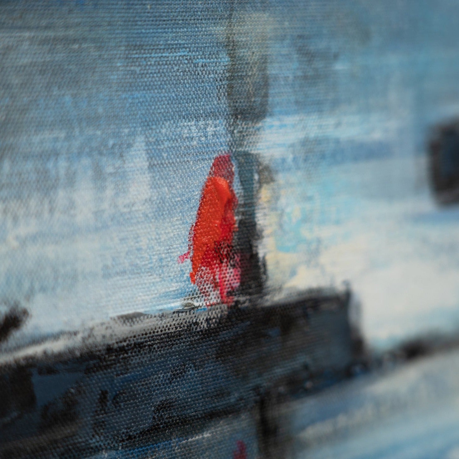 • Handgemalte Acrylkunst Leuchtend Blau Grau Berge