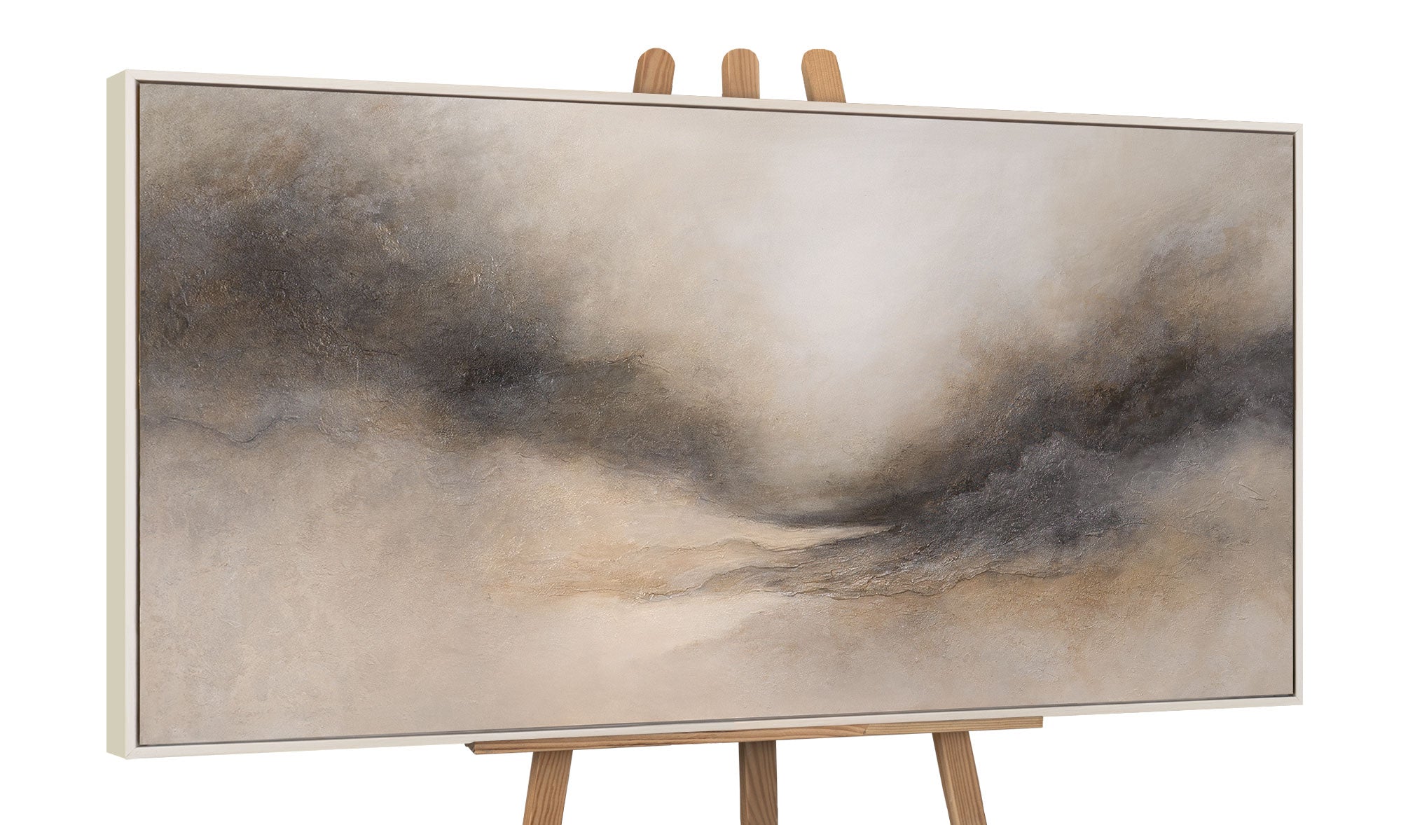 "Foggy Morning" is a mood-setting, hand-painted acrylic painting that creates a calm, almost mystical atmosphere with its soft color palette of Beige, Gray, and subtle Brown tones. The relief-like texture enhances the depth of the painting, making the fog come alive. The harmonious blend of colors conveys vastness and serenity – a work of art full of quiet strength.