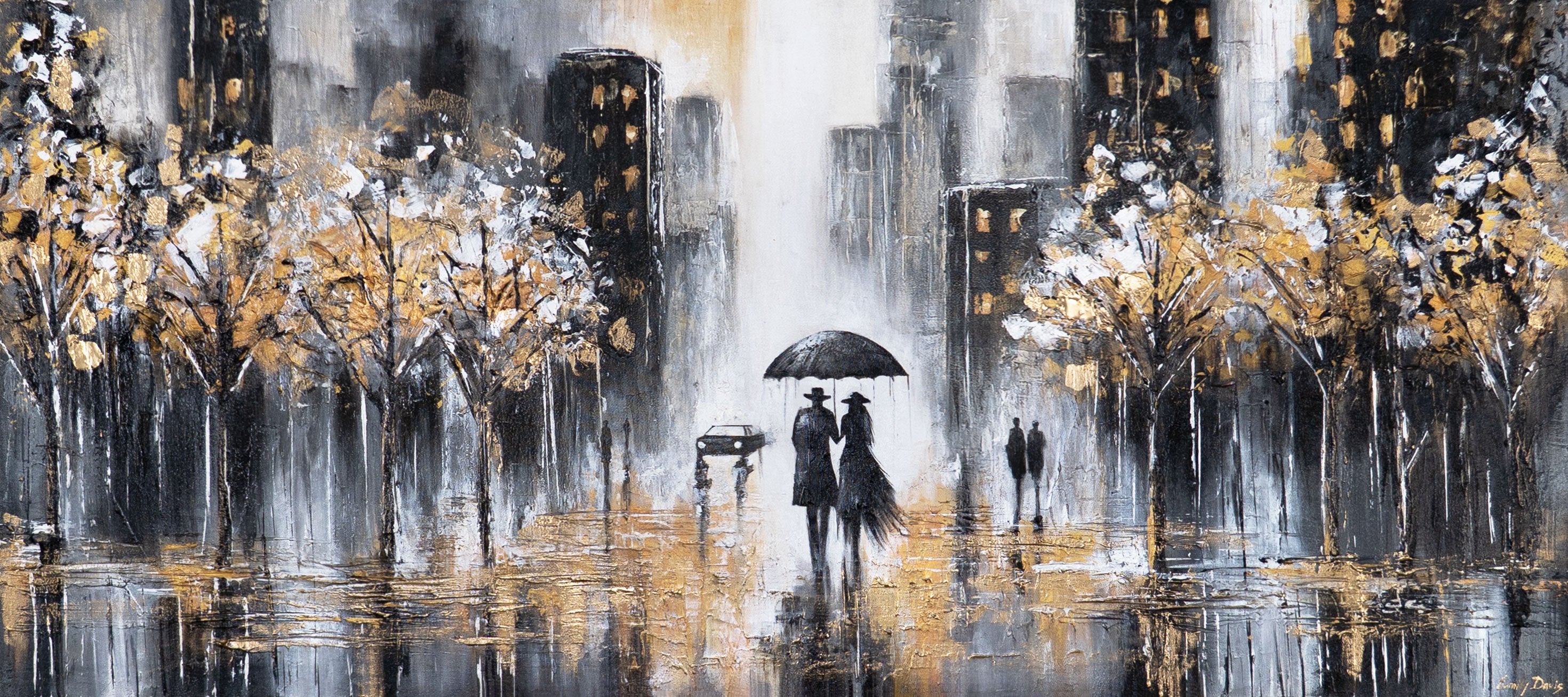 "Golden Evening" Acrylic Painting – Black and Gold Art City Paintings 115x50cm