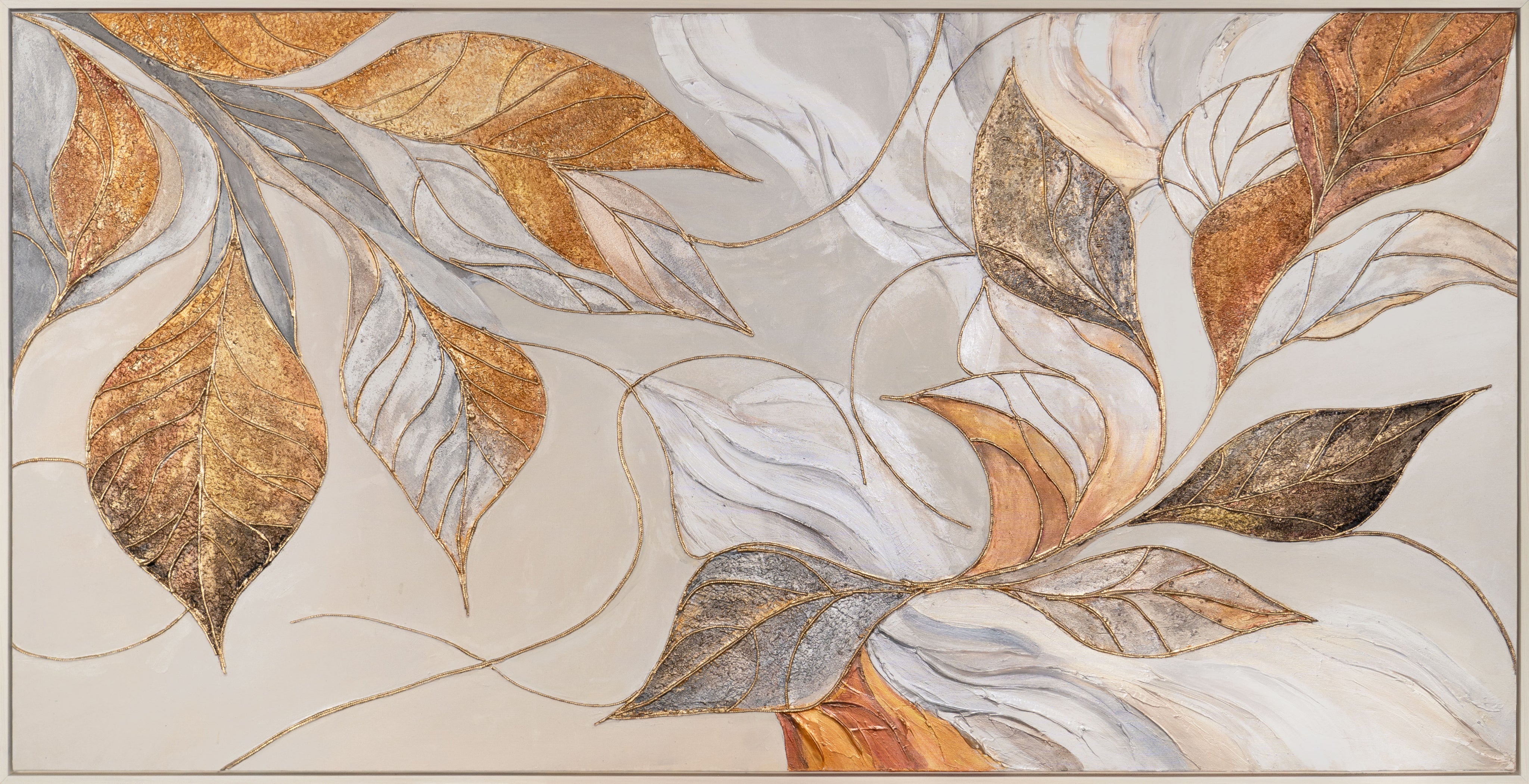 • Wandbild leinwand blätter – moderne acrylmalerei mit goldakzenten