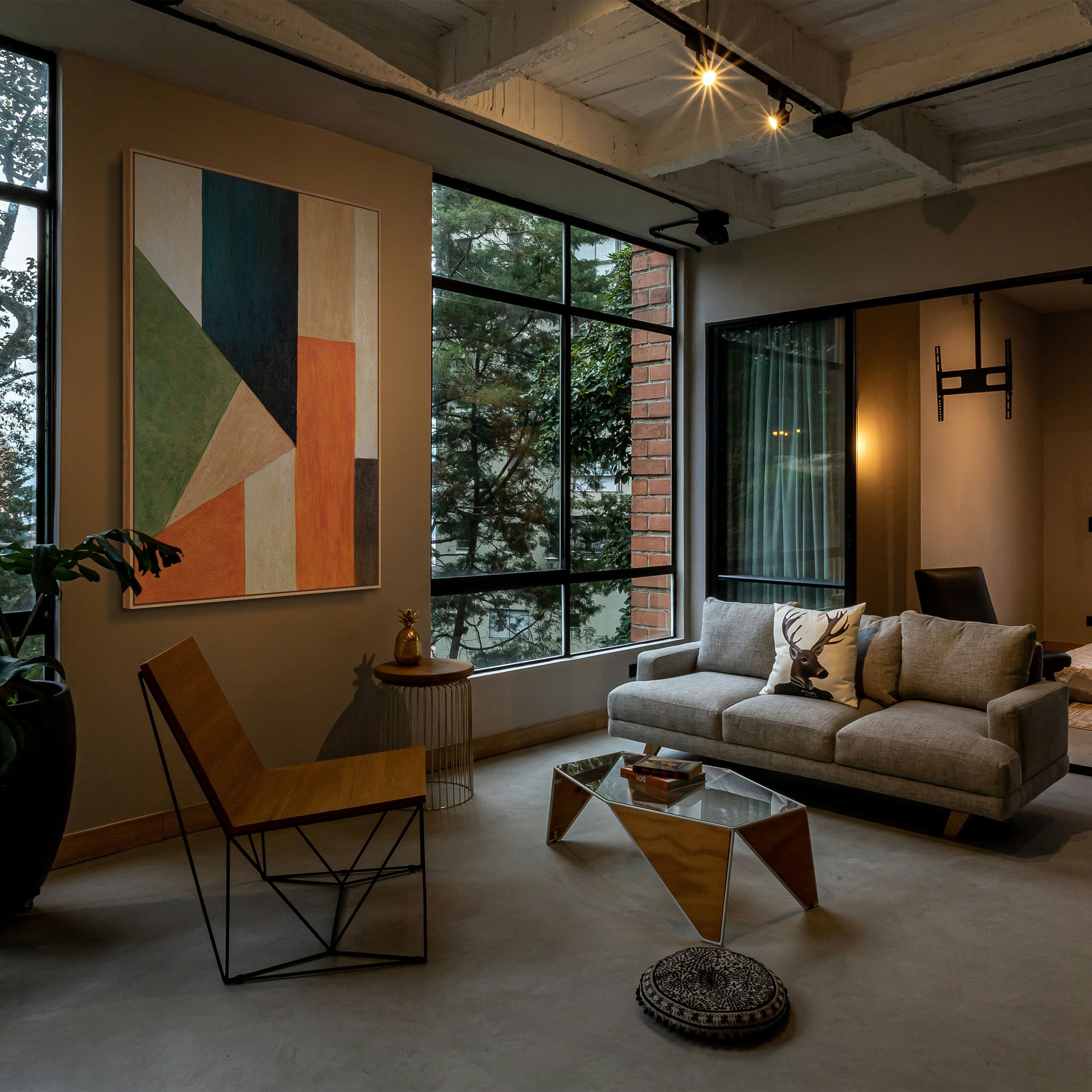 • Wanddeko Wohnzimmer farbige Geometrie modern