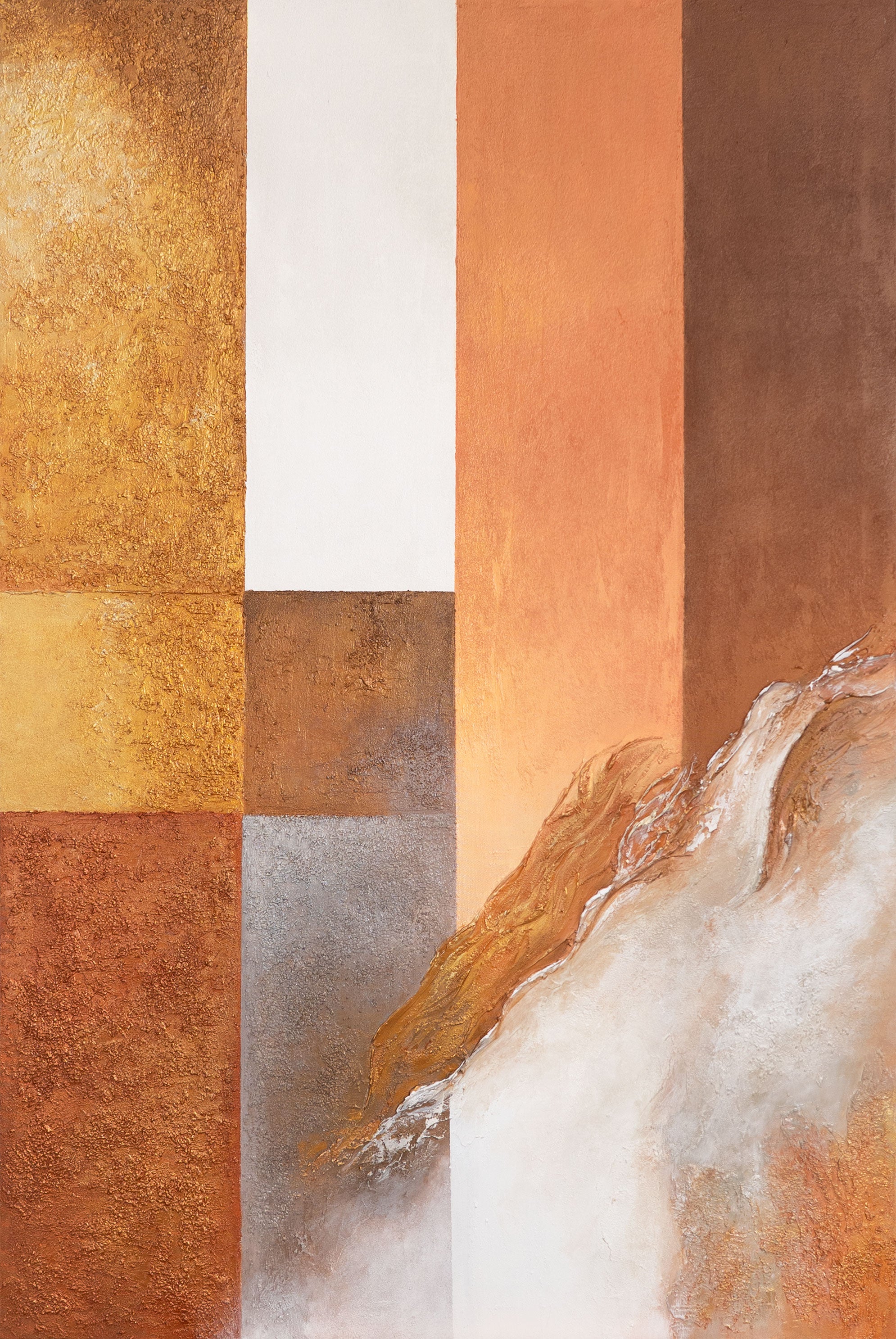 „Harmonie der Formen“ vereint klare Linien, warme Farben und strukturierte Flächen zu einem einzigartigen Kunstwerk, das Moderne und Natürlichkeit verbindet – mit gratis Versand.