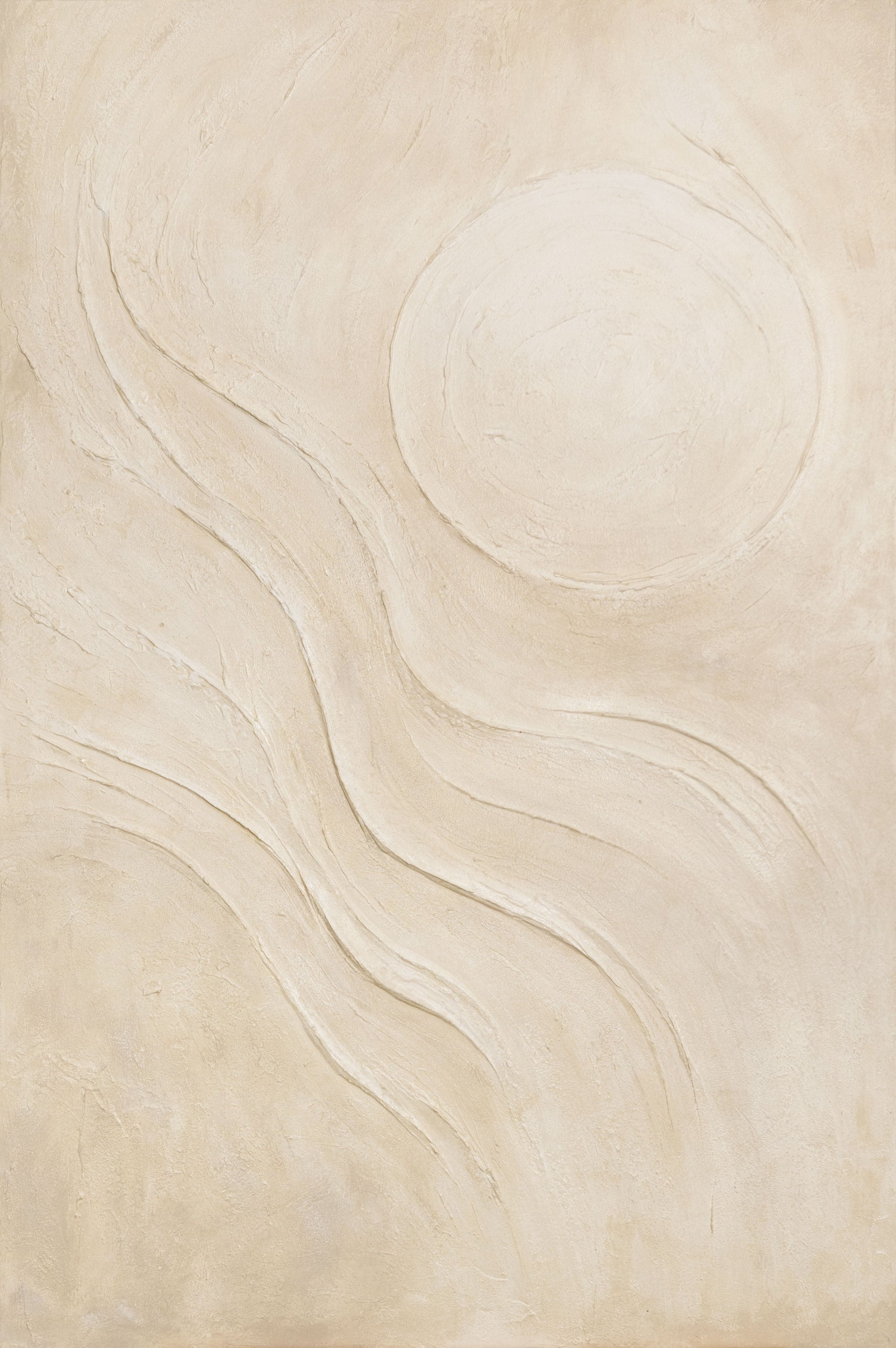„Sandige Sonne“ ist ein handgemaltes Acrylgemälde, das Ruhe und Natürlichkeit ausstrahlt. Die weichen Linien und sanften Beigetöne erinnern an Wellen im Sand und das warme Licht einer stillen Sonne. Die plastische Struktur erzeugt Tiefe und verleiht dem Werk eine harmonische, beruhigende Ausstrahlung.