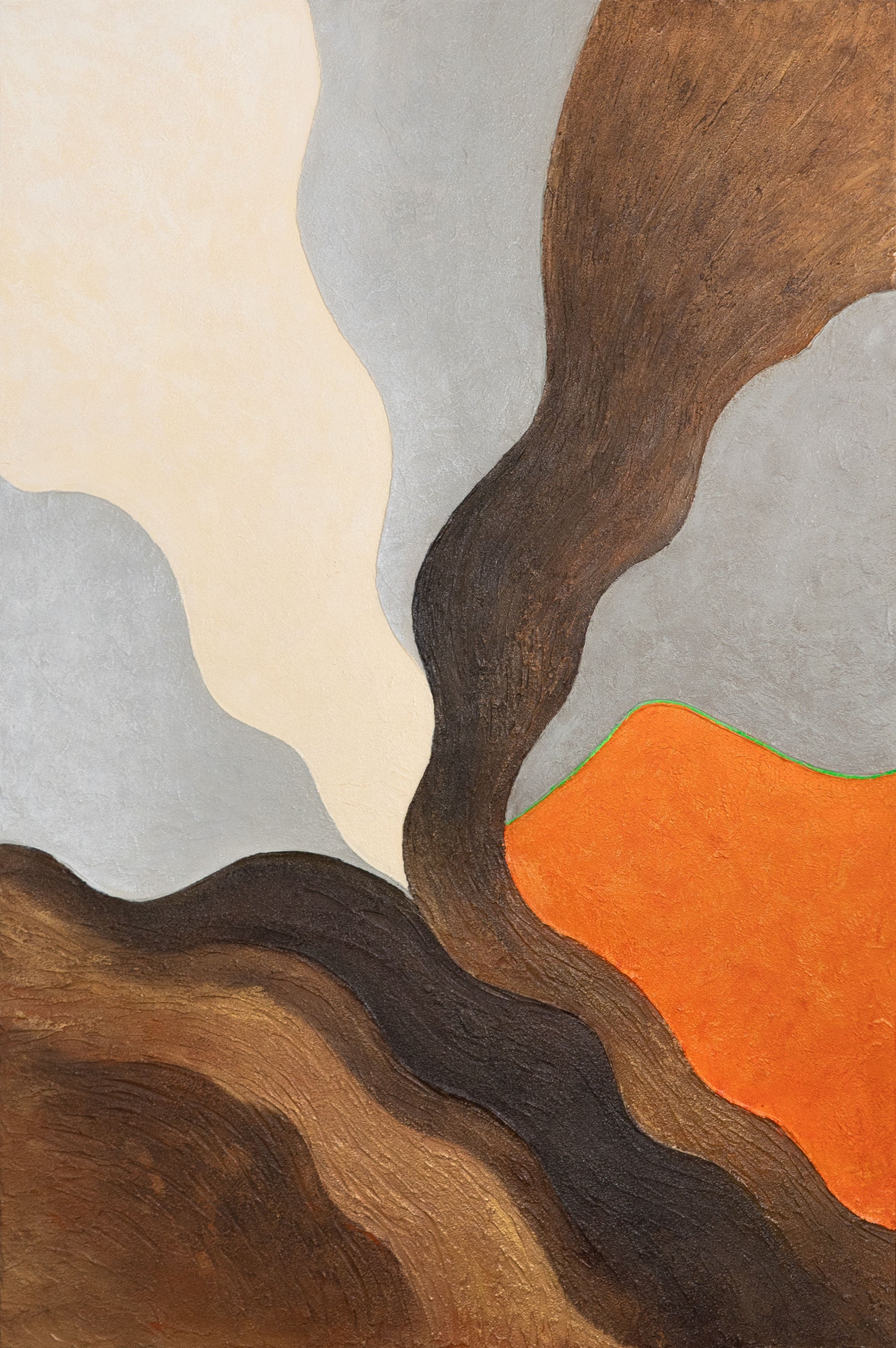 „Abendliche Hügel“ ist ein handgemaltes Acrylgemälde, das die Ruhe und Farbintensität der Natur einfängt. Warme Braun-, Creme- und Orangetöne verschmelzen mit sanften grauen Schattierungen zu einer harmonischen Landschaftsform. Die strukturierte Oberfläche verleiht dem Werk Tiefe und Lebendigkeit, wodurch eine organische und zugleich moderne Wirkung entsteht.
