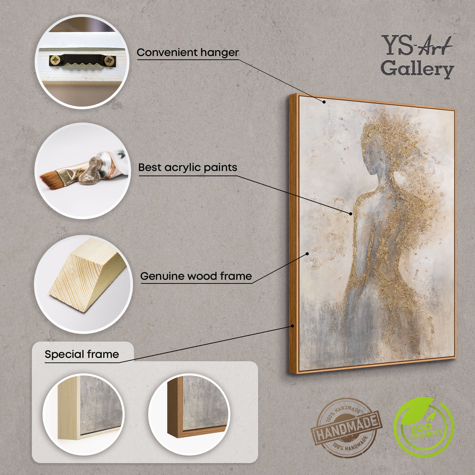 If you are looking to commission luxury wall art tailored to your interior, YS-ART can create a bespoke painting by adjusting scale, gold detailing, colour palette and frame finish while developing an original subject that fits your space.