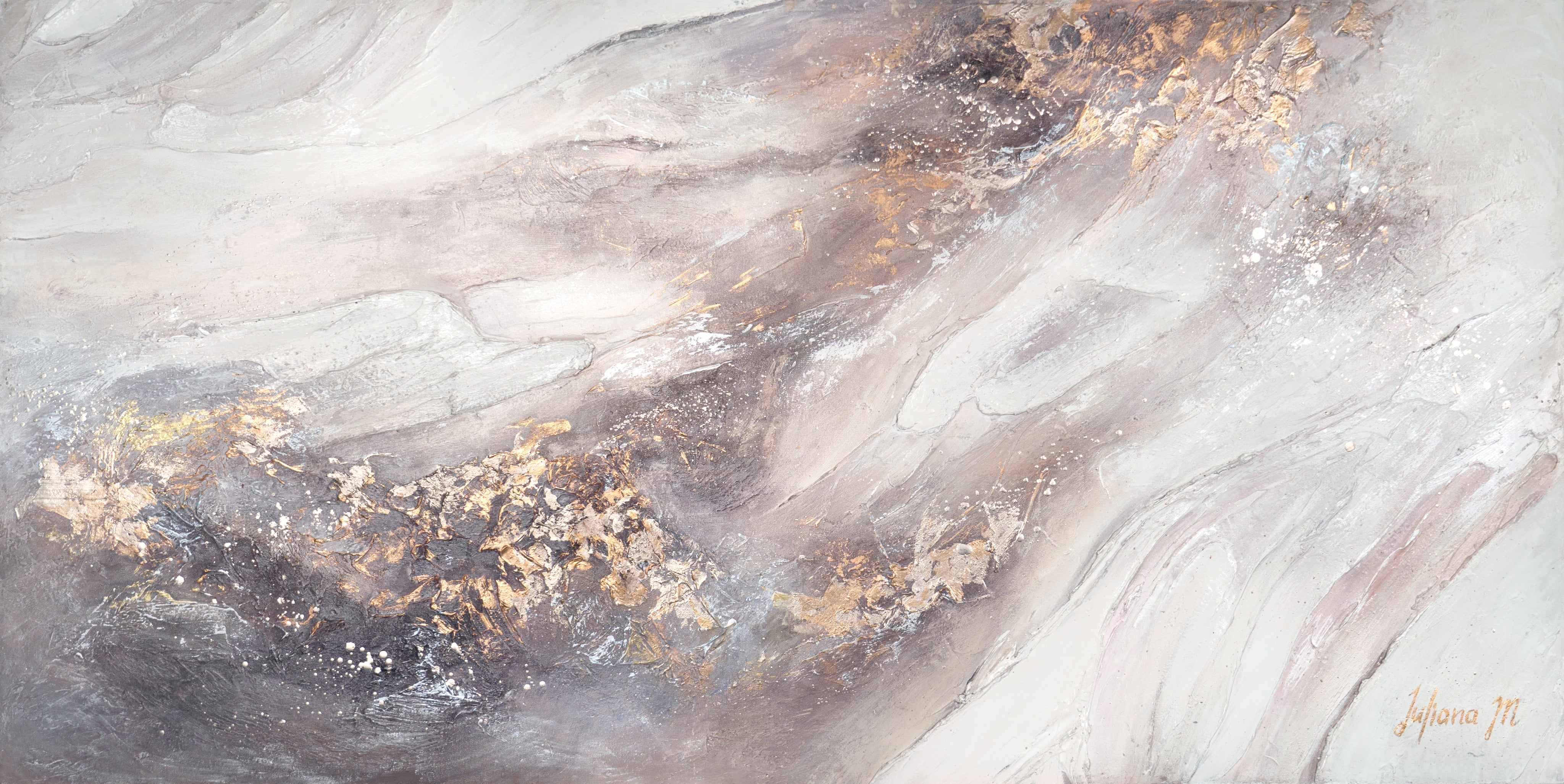 Enrich your home or office with this elegant hand-painted abstract painting. The subtle color shades and golden accents create a stylish and soothing atmosphere. Every detail of this artwork is 100% handmade, making it a unique and one-of-a-kind piece. Enjoy free delivery directly to your home.