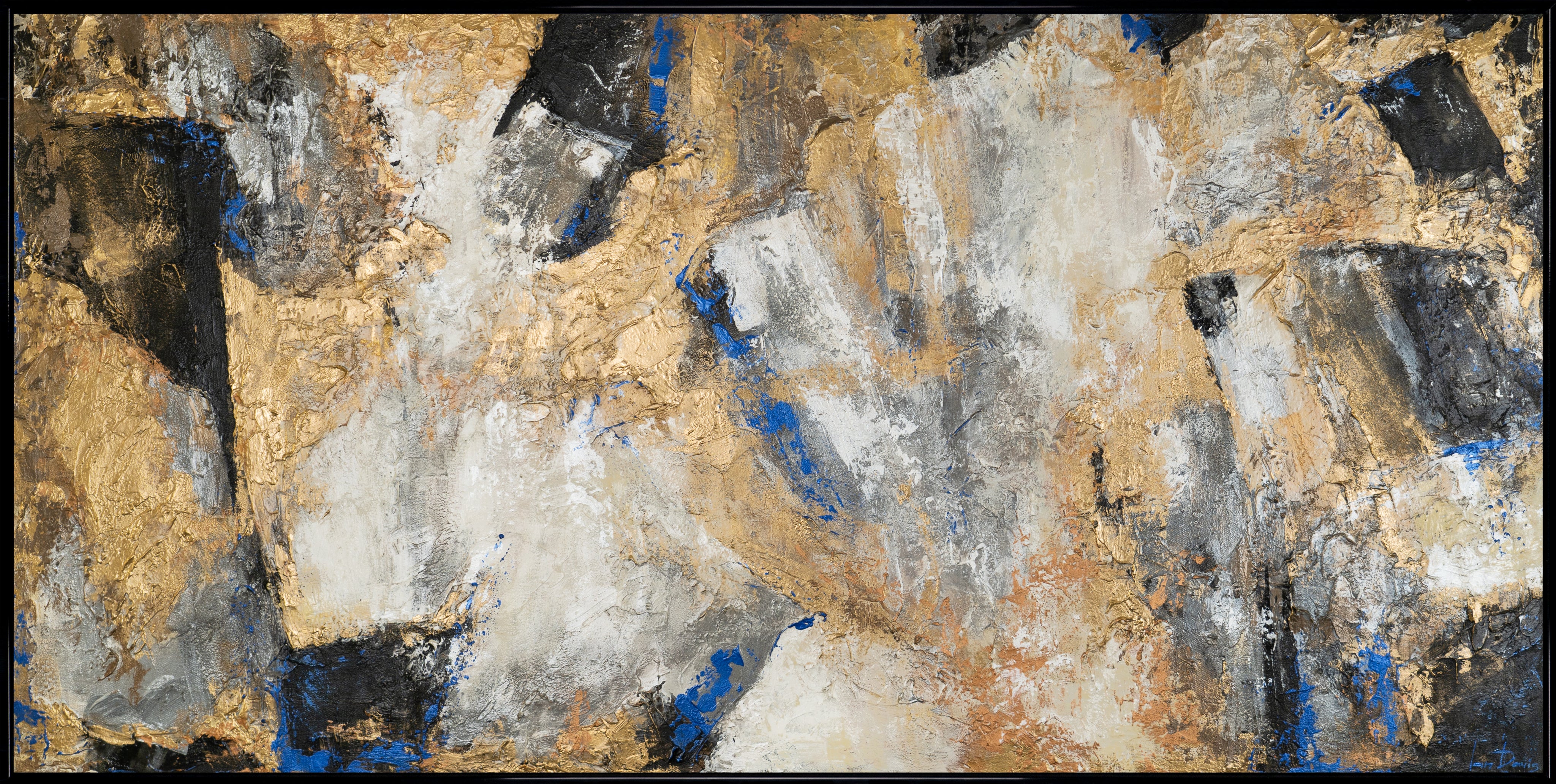 Abstract Canvas Art 'Golden Contrast' – Modern Paintings with Gold Accents and Frame