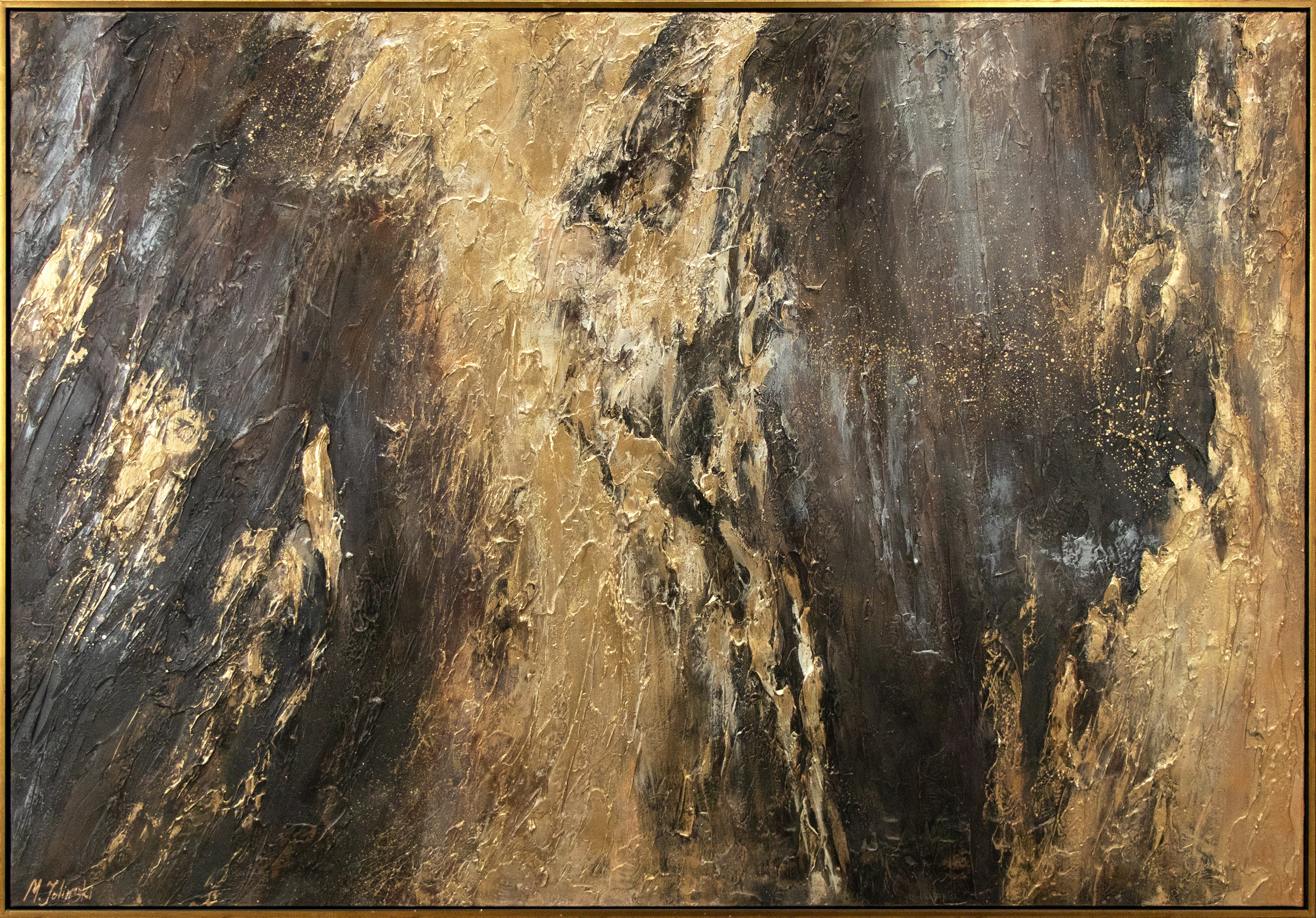 • Leinwandbild mit abstrakten gold-schwarzen Farbschichten gerollt