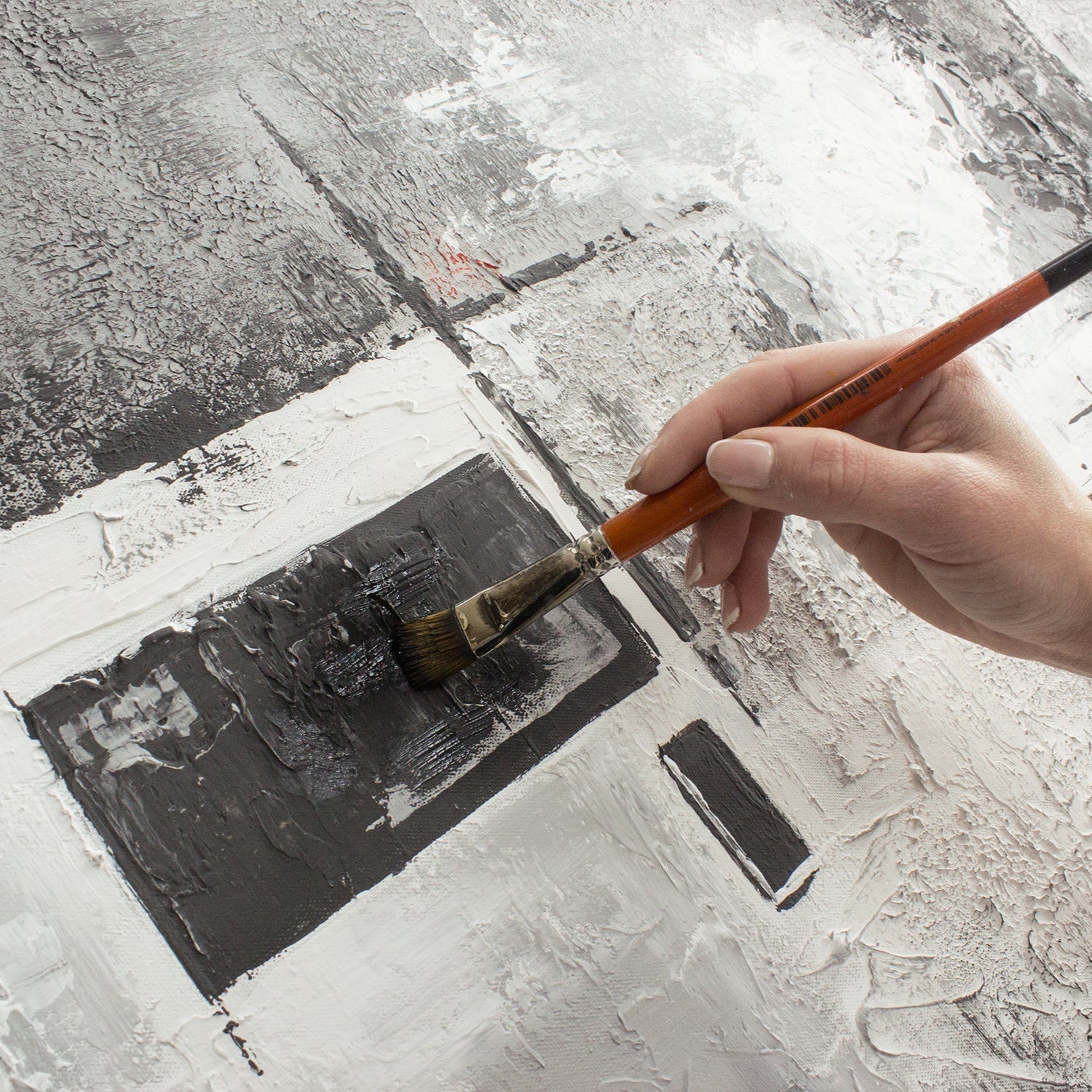 • Künstlerhand beim Malen auf strukturierter Leinwand