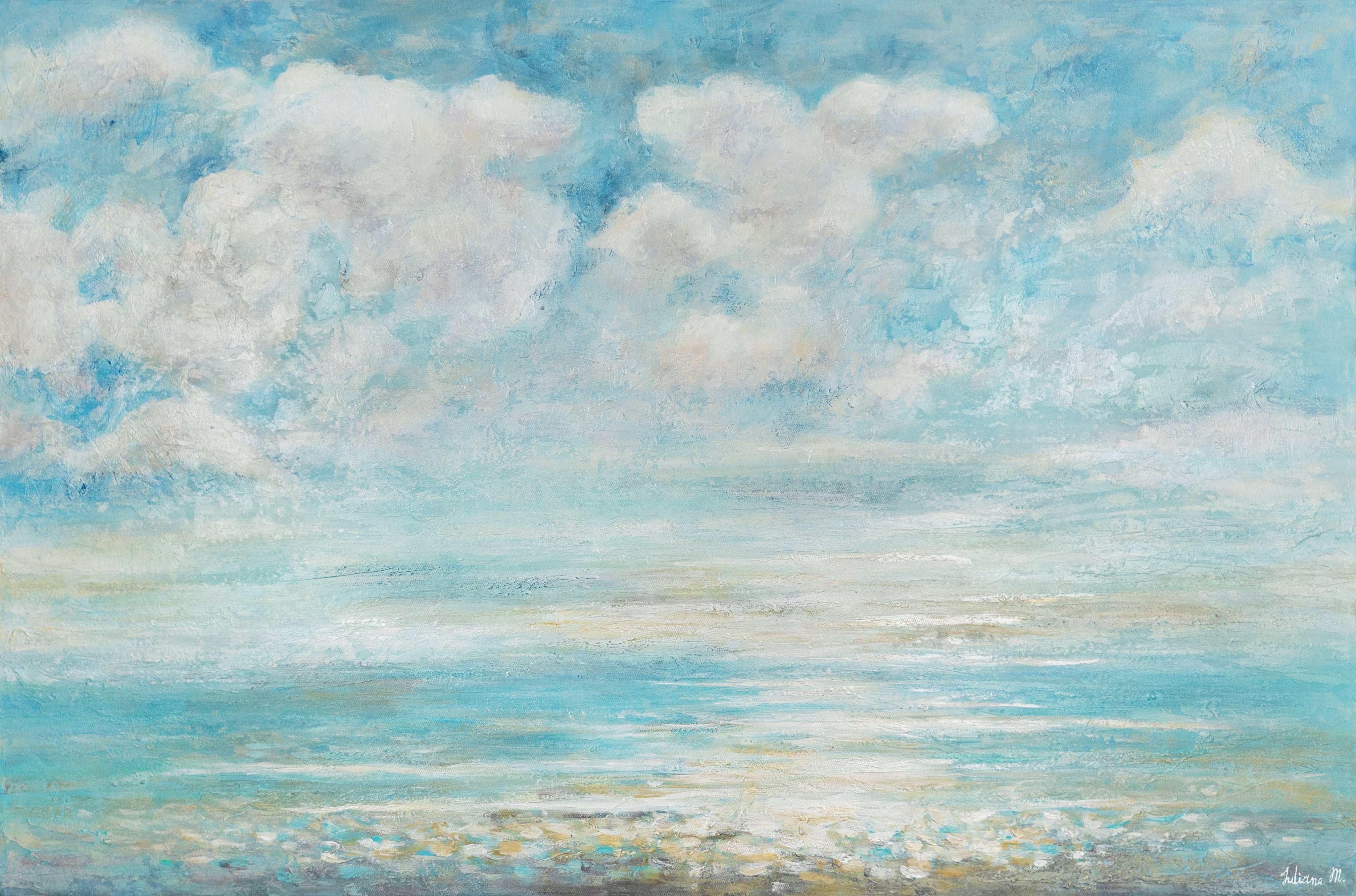 This hand-painted canvas artwork captures the feeling of a summer refreshment: with bright blue tones, turquoise, and accents of white and coral, it creates a lively seascape and beach scene. The textured acrylic surface gives the painting dynamic depth, emphasizing the refreshing kiss of the waves. Ideal as a mood-setting focal point in living rooms, bedrooms, or vacation homes – for a refreshing atmosphere all year round.