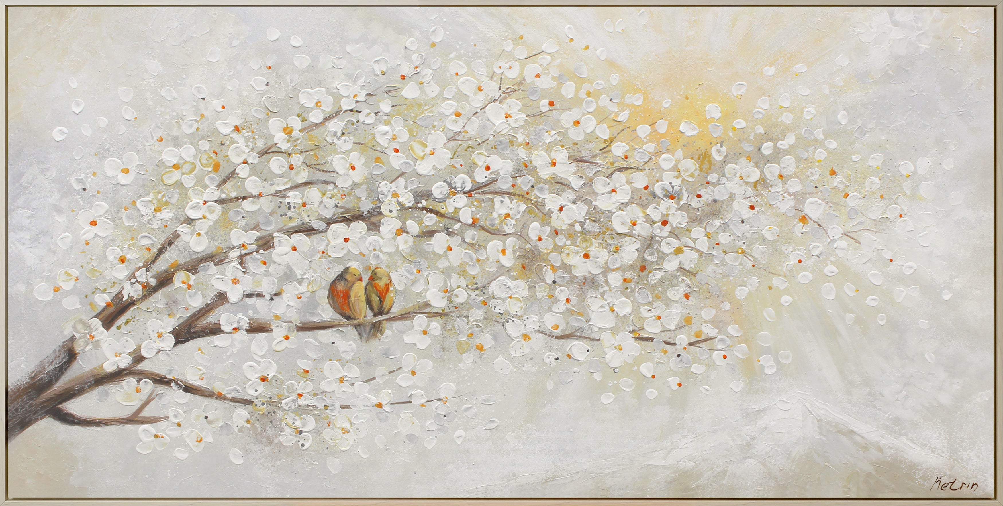 Abstract paintings with a sunrise ideally fit into your apartment or house. Paintings on the subject of spring offer sophistication, individuality, and emphasize above all the good taste of the owner.