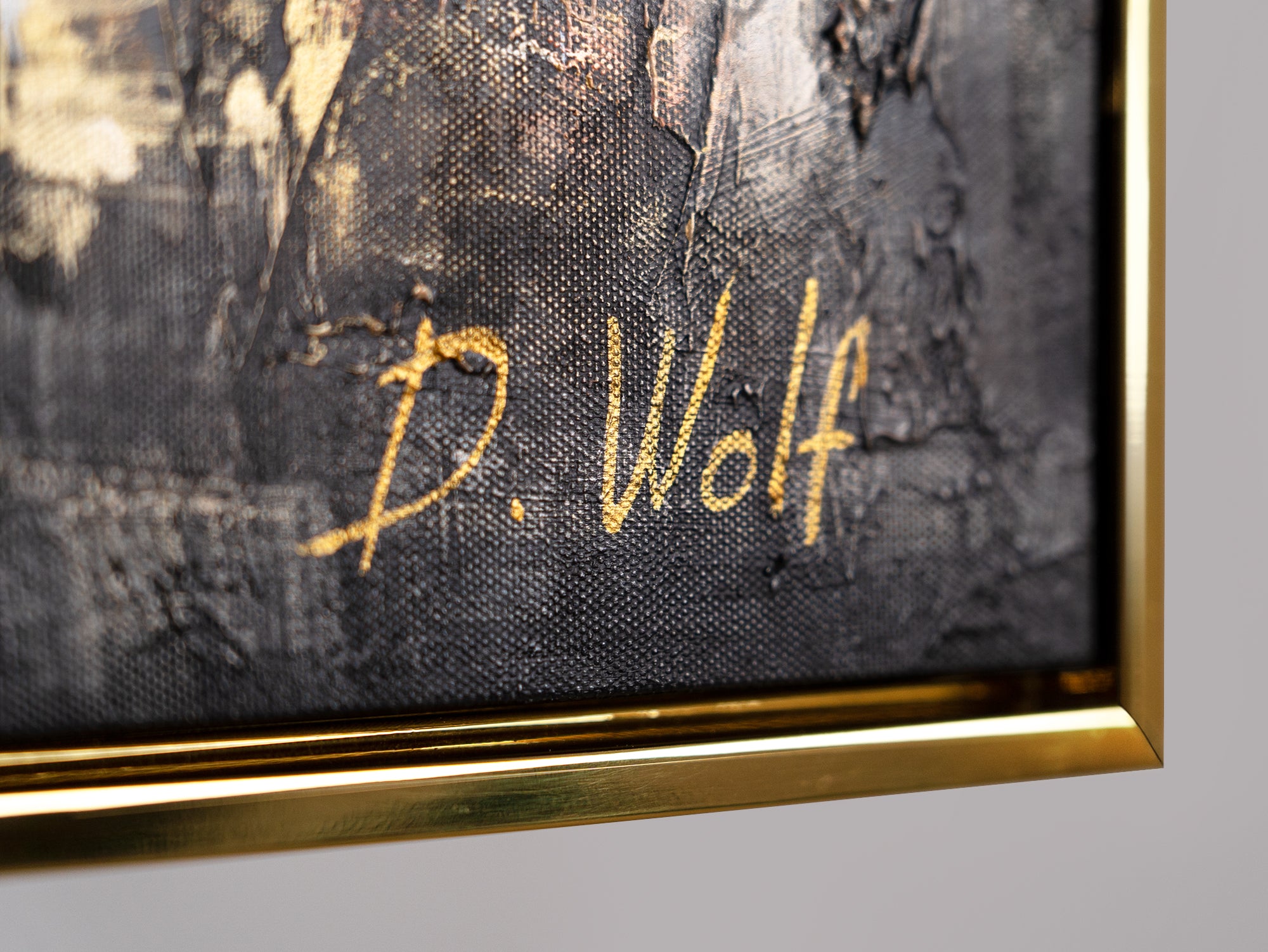 Discover the fascinating "Oasis of faith" - a collection of glow in the dark wall paintings. Luminous paintings that enchant your senses and make rooms shine. Frame - black with gold.