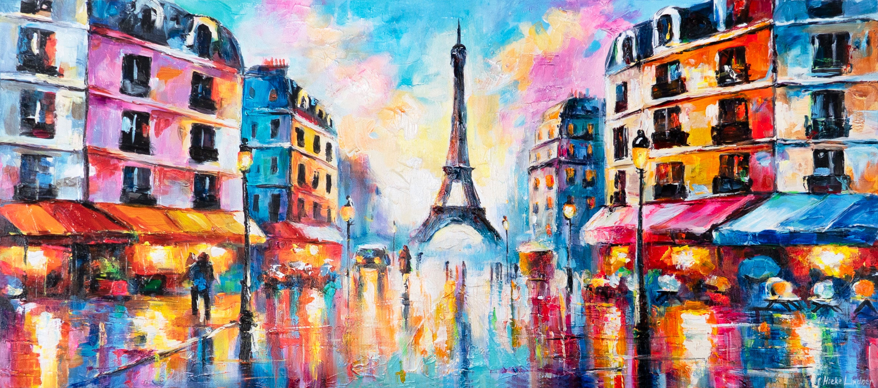 • "Paris Lights" Acrylic on Canvas – City Paintings and Colorful Abstract Art 115x50cm