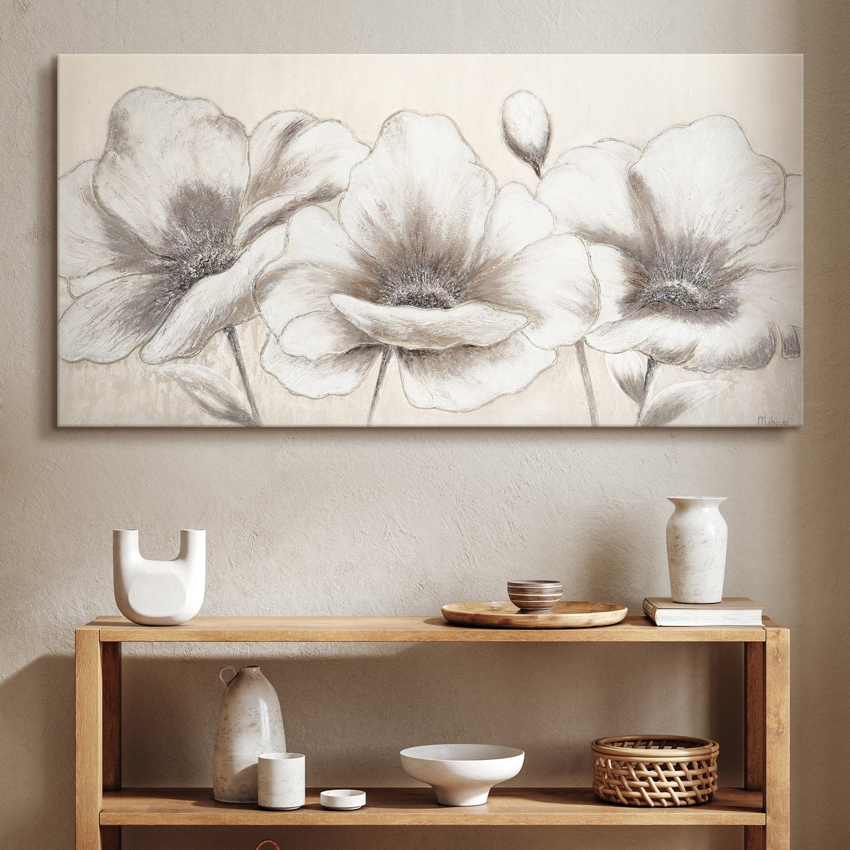 • Modern acrylic painting with floral motifs - hand-painted canvas art
