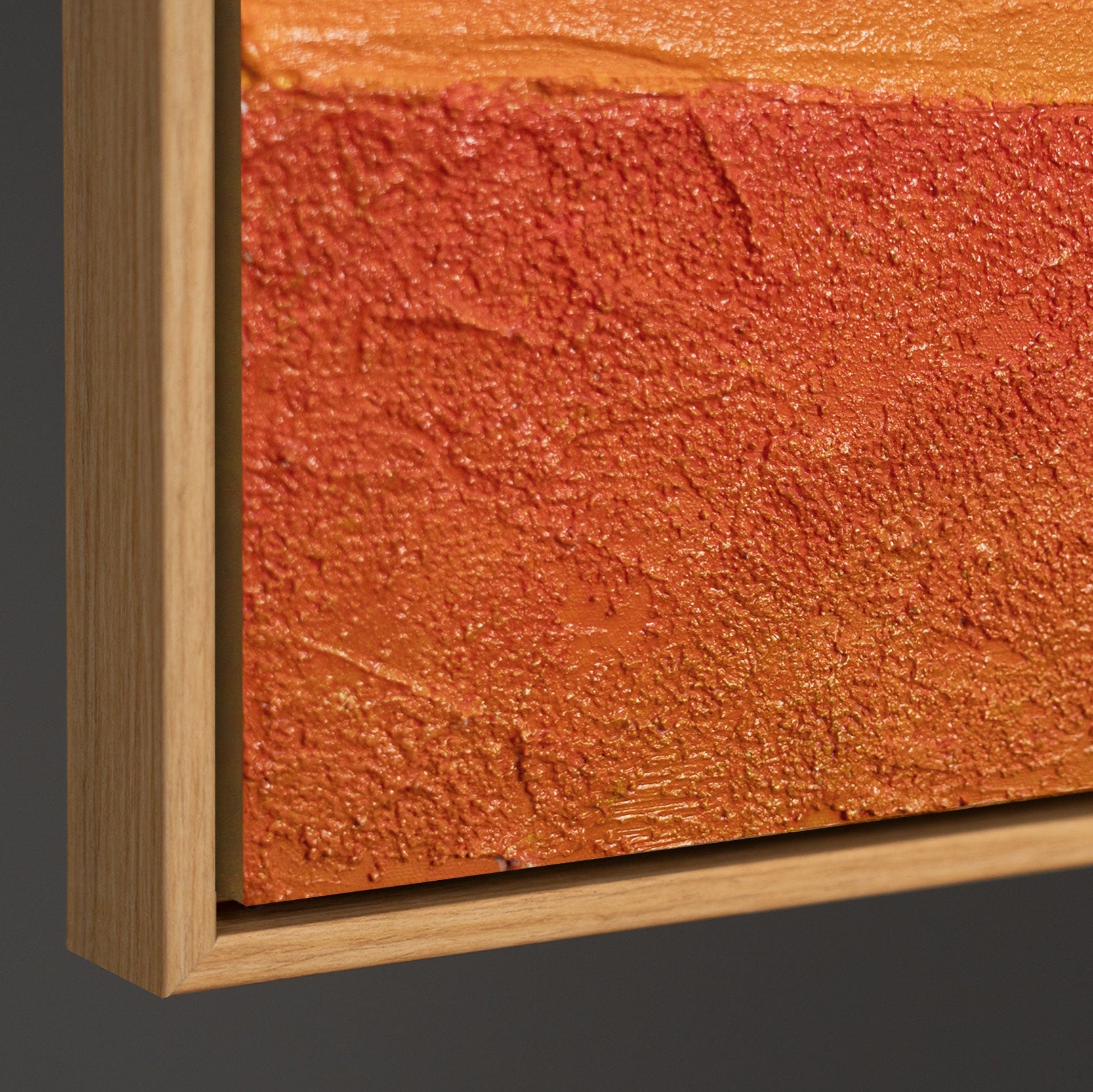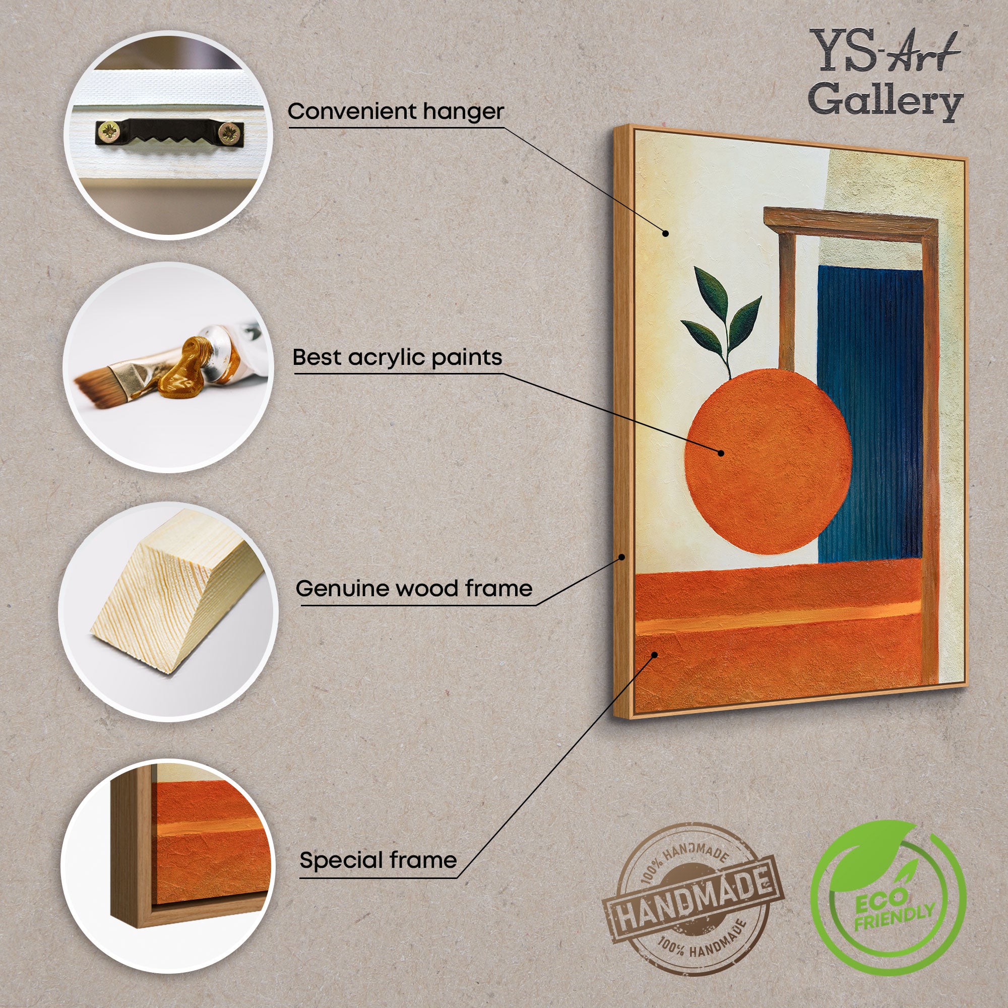 "Fertile Balance" unites geometry and nature in a harmonious composition. The vibrant orange sphere represents energy and life, while clean lines and natural textures create stability and tranquility. Accents of deep blue and warm ochre lend the artwork depth and expression.