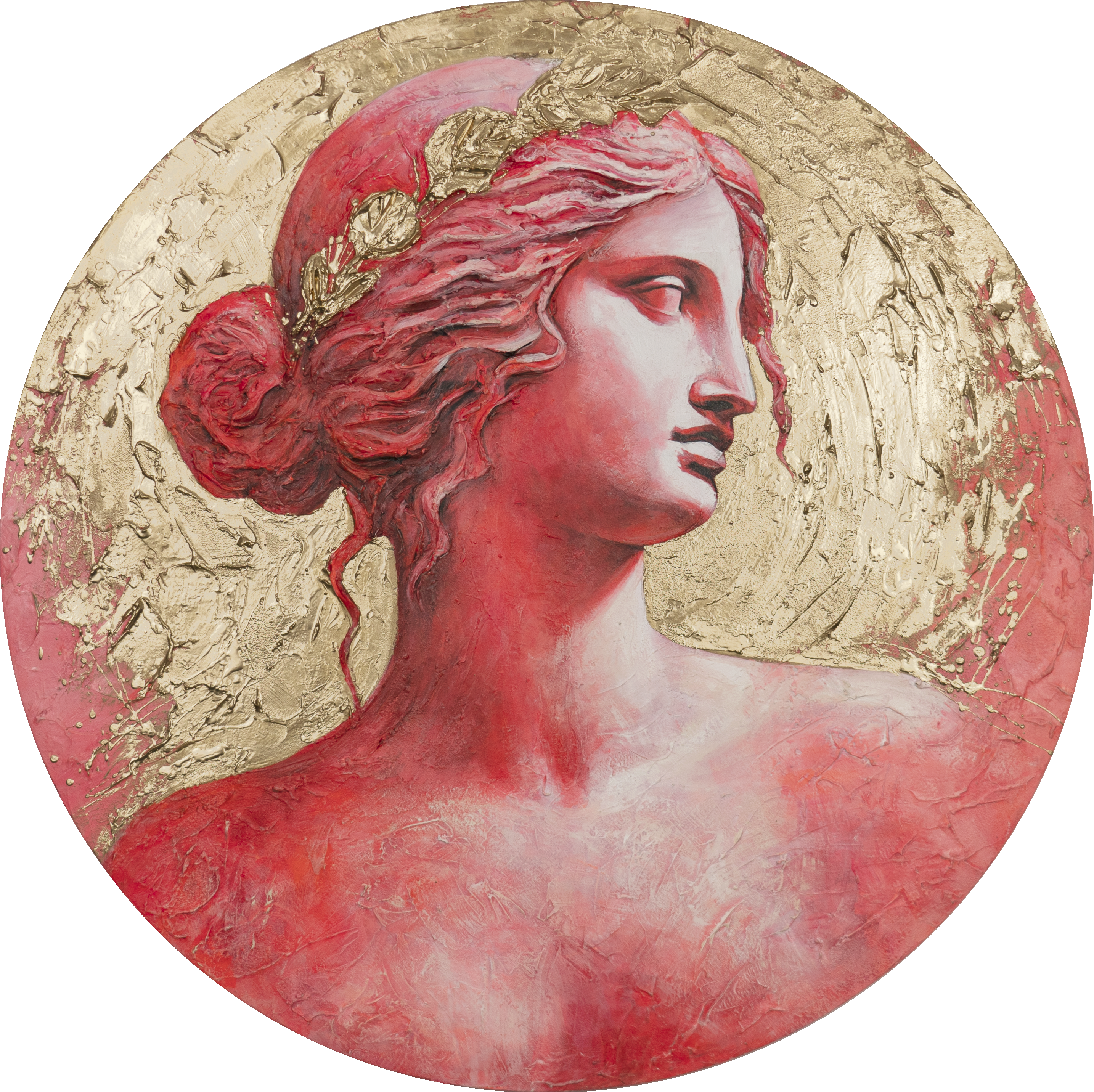 Bring luxury and movement into your space with "Golden Radiance" – a round canvas artwork that blends radiant reds with shimmering gold textures. This original abstract painting adds warmth and depth to any living room or office setting, and is ideal for modern decor lovers.