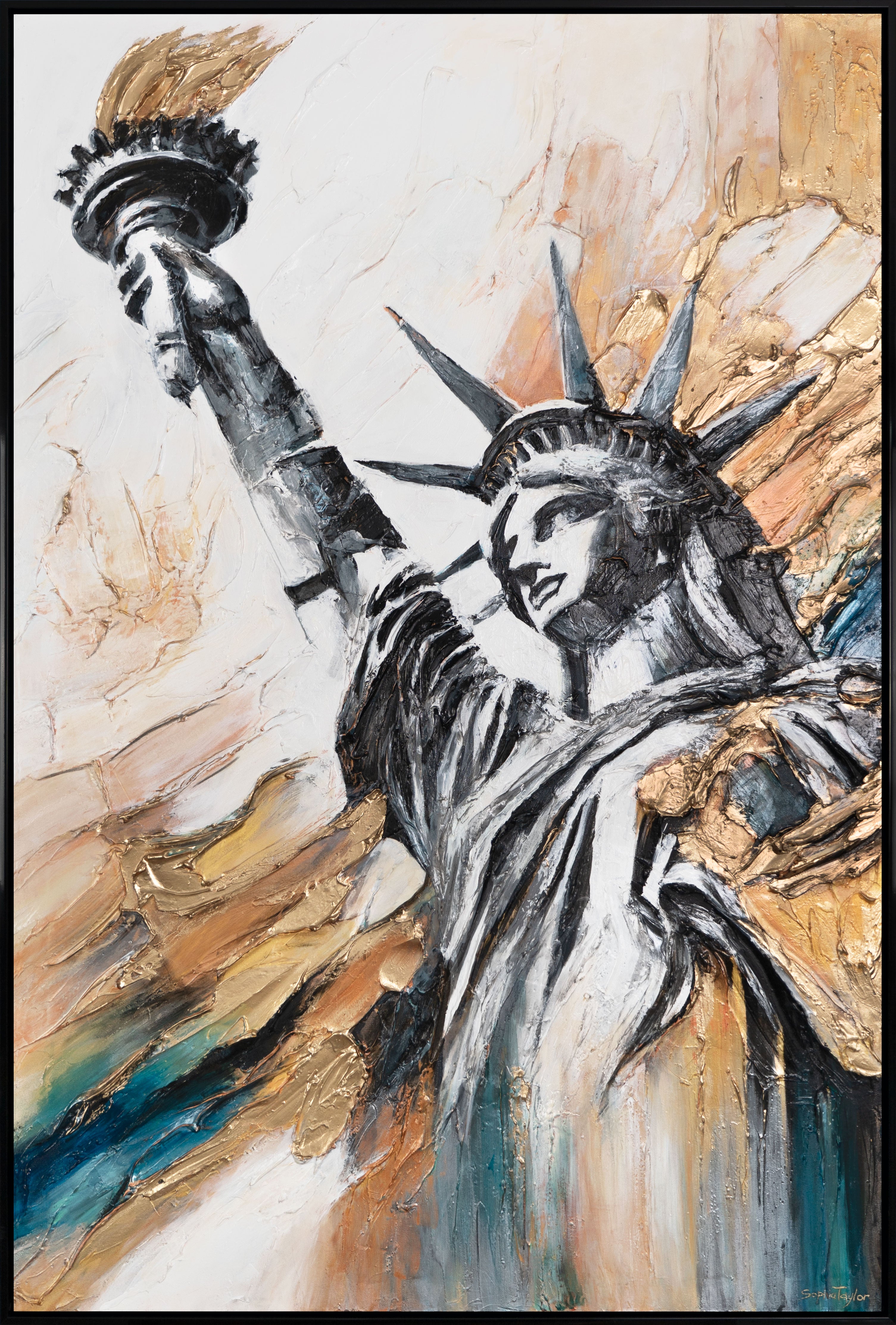"Light of Freedom" Acrylic Picture – Canvas Painting and Modern Artwork with Statue of Liberty