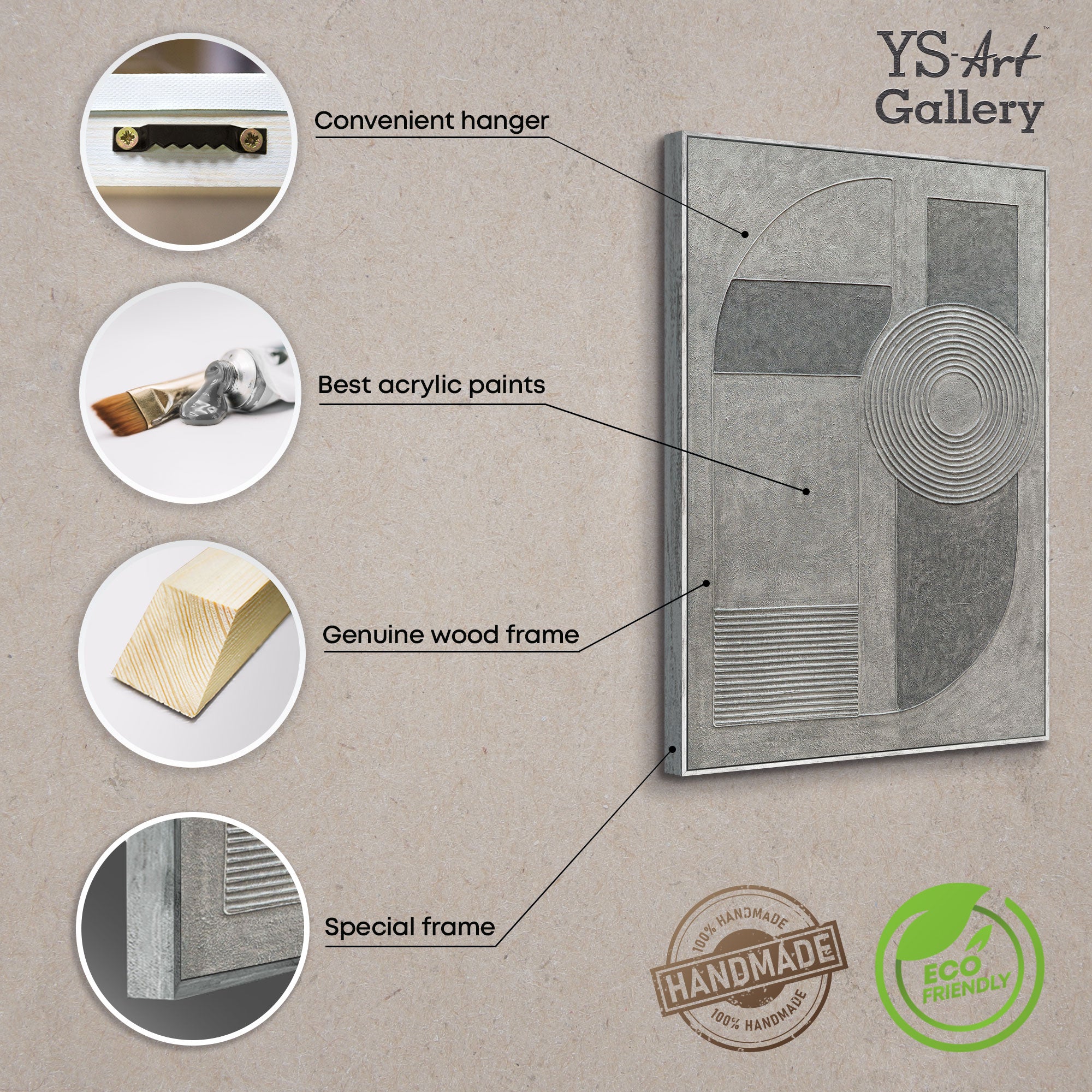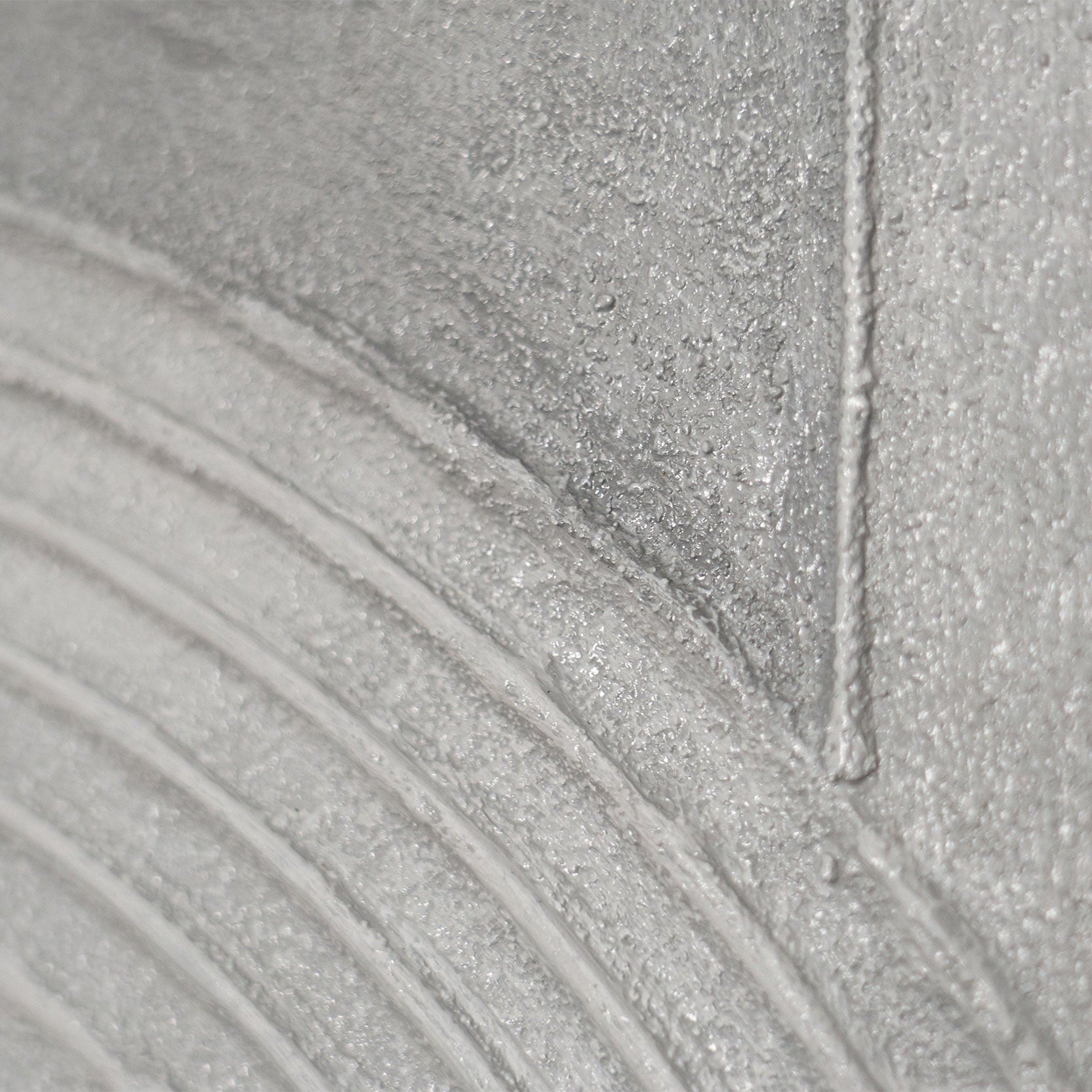 "Gray Chord" unites architectural clarity with artistic depth. Geometric forms, concentric circles, and textured surfaces in various shades of gray create a harmonious balance between precision and emotion. The finely crafted surface is reminiscent of concrete, lending the work a sculptural quality.