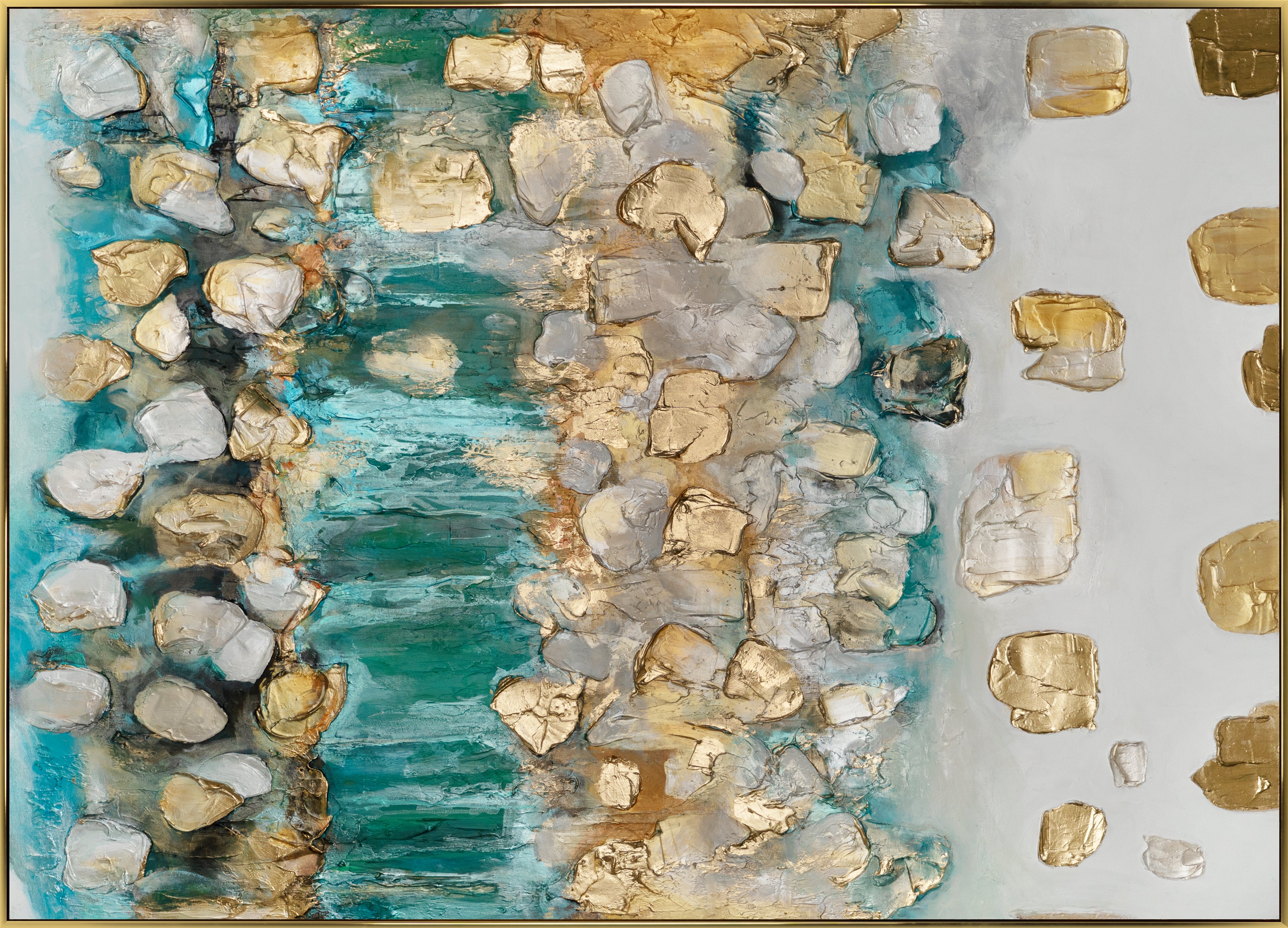 - Theme: Rhythm of Infinity on turquoise and white canvas