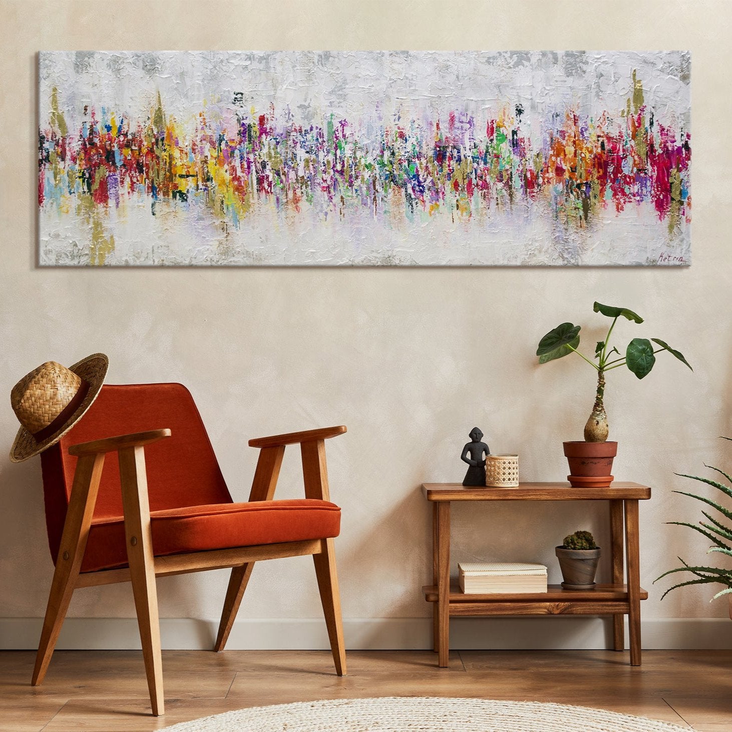 • Wohnraum mit abstraktem buntem Leinwandbild