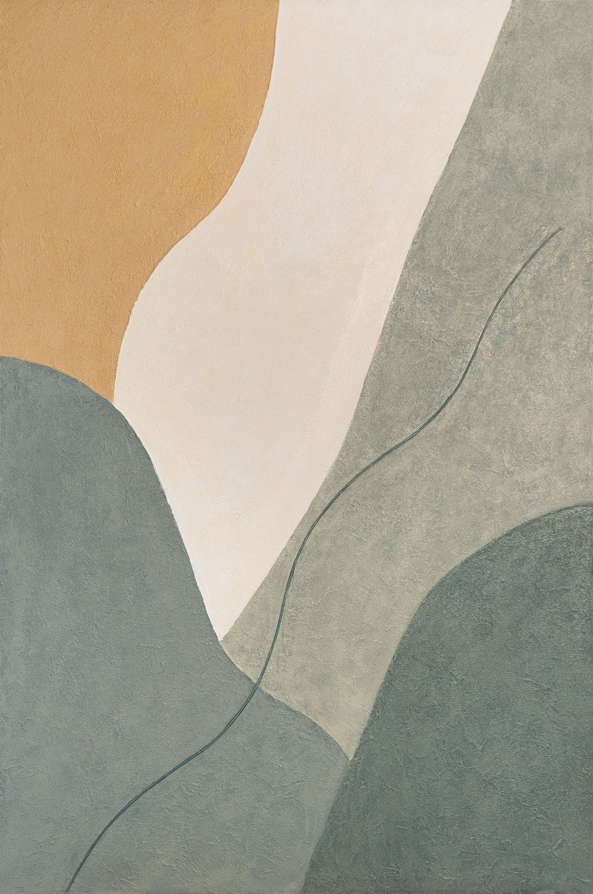 „Ewige Linie“ verkörpert fließende Bewegung und natürliche Harmonie. Zarte Grün-, Beige- und Cremetöne verbinden sich in einer sanften Komposition aus Linien und Formen. Die feine Struktur der Oberfläche verleiht der Acrylmalerei Tiefe und Lebendigkeit, während das Bild Ruhe und Ausgeglichenheit ausstrahlt.