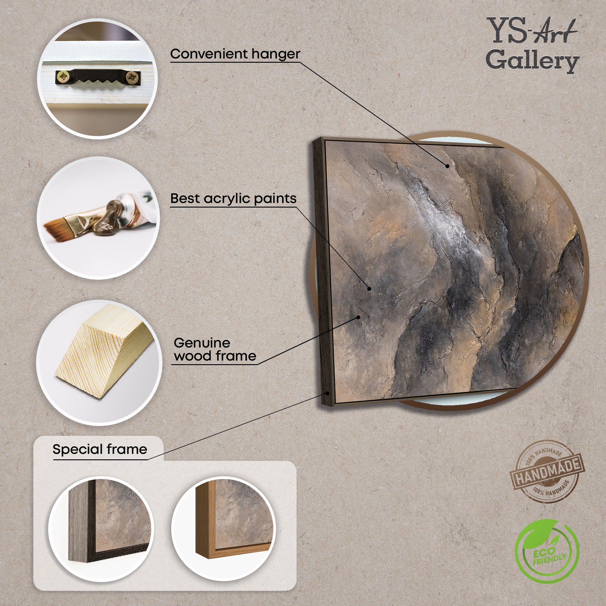 „Dunkelheit und Morgendämmerung“ ist ein ausdrucksstarkes abstraktes Acrylgemälde, geprägt von tiefen Grau-, Braun- und warmen Erdtönen. Die vielschichtige, reliefartige Struktur erinnert an natürliche Gesteinsformationen und Übergänge zwischen Schatten und Licht. Feine Kontraste und raue Oberflächen verleihen dem Werk eine kraftvolle, erdige Präsenz und unterstreichen den handgemalten Charakter.
