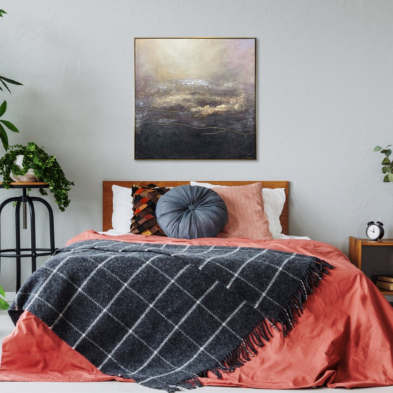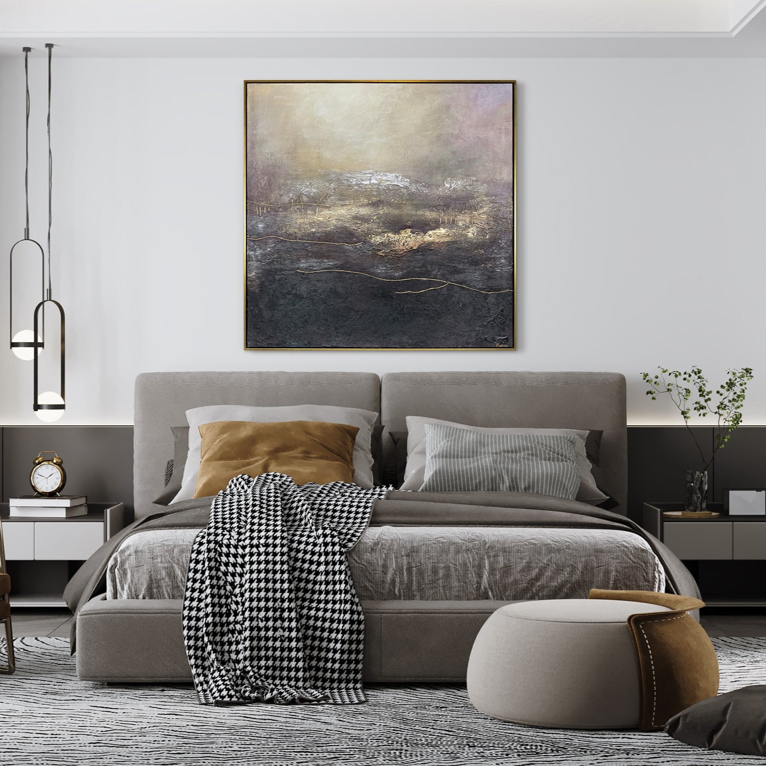 • Acrylmalerei Gold Violett Struktur Design Schlafzimmer