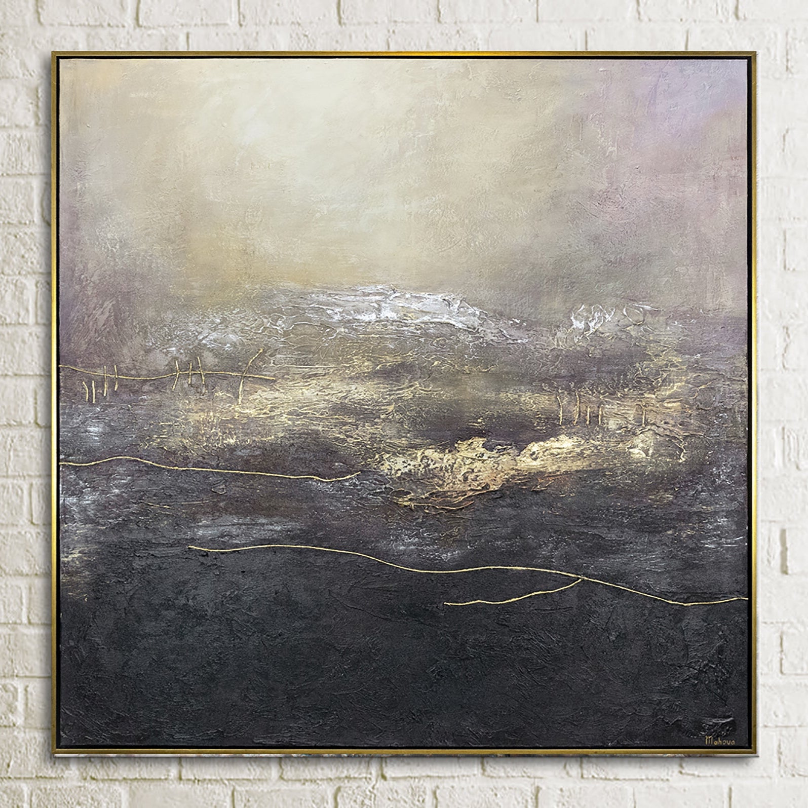 • Abstrakte Acrylkunst Gold Violett Struktur Handarbeit