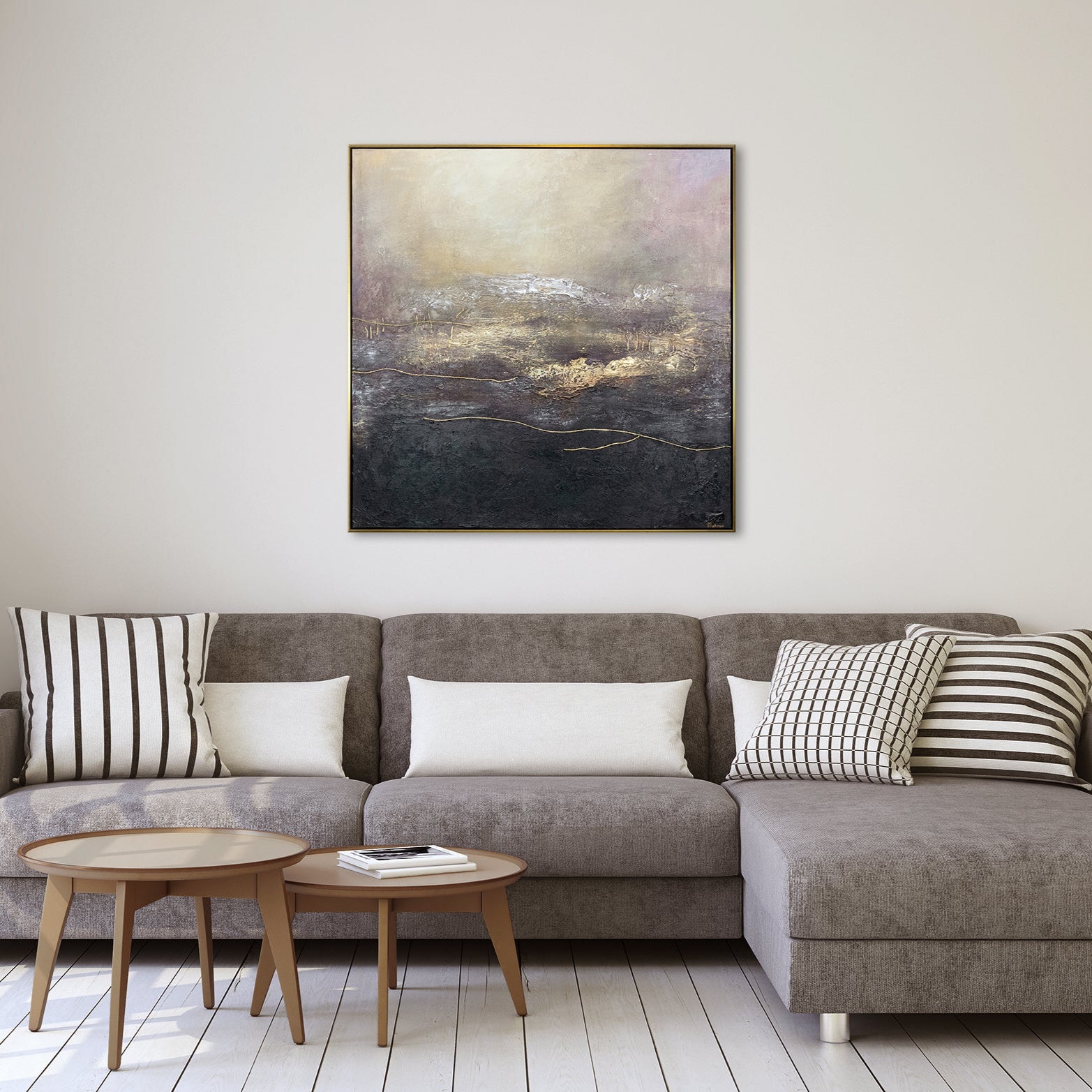 • Abstraktes Acrylbild Gold Violett auf Staffelei Wandkunst
