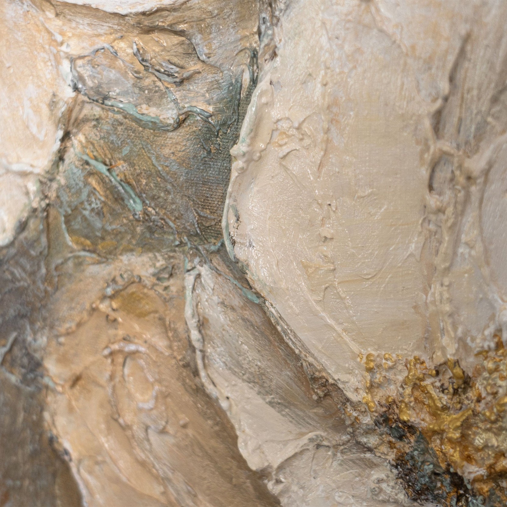 „Schleier der Zärtlichkeit“ ist ein handgemaltes Acrylgemälde, das mit zarten weißen Blüten auf warmem, beigefarbenem Hintergrund bezaubert. Die Blütenblätter wirken durch die reliefartige Struktur besonders lebendig und erhalten eine edle Tiefe. Sanfte Farbverläufe zwischen Creme, Beige und dezenten Goldnuancen verleihen dem Werk eine harmonische, ruhige Ausstrahlung.