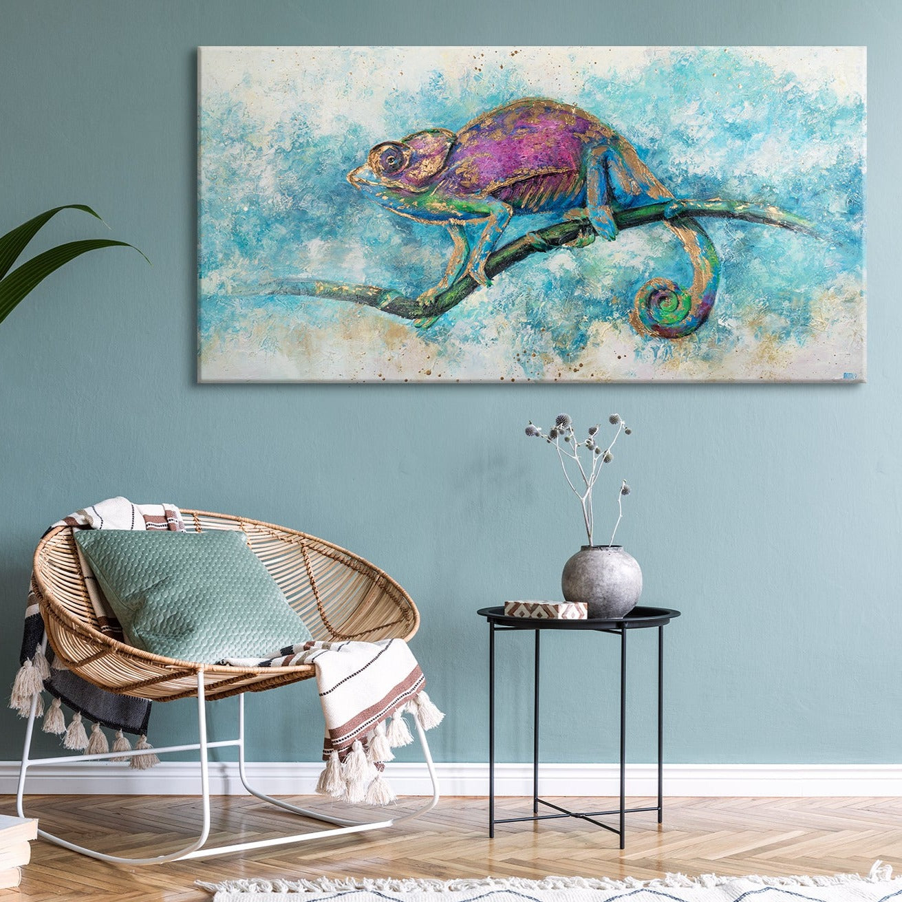 • Acrylkunst Wanddeko Tier bunt Struktur Chamäleon Design