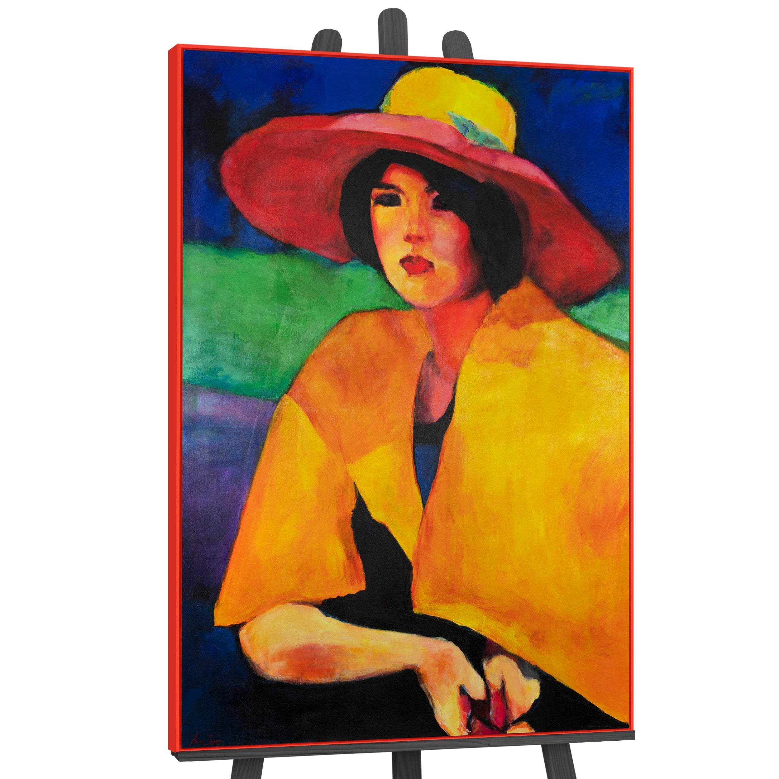 • Colorful Abstract Art "Woman with Hat" – Hand-Painted Canvas Wall Decor