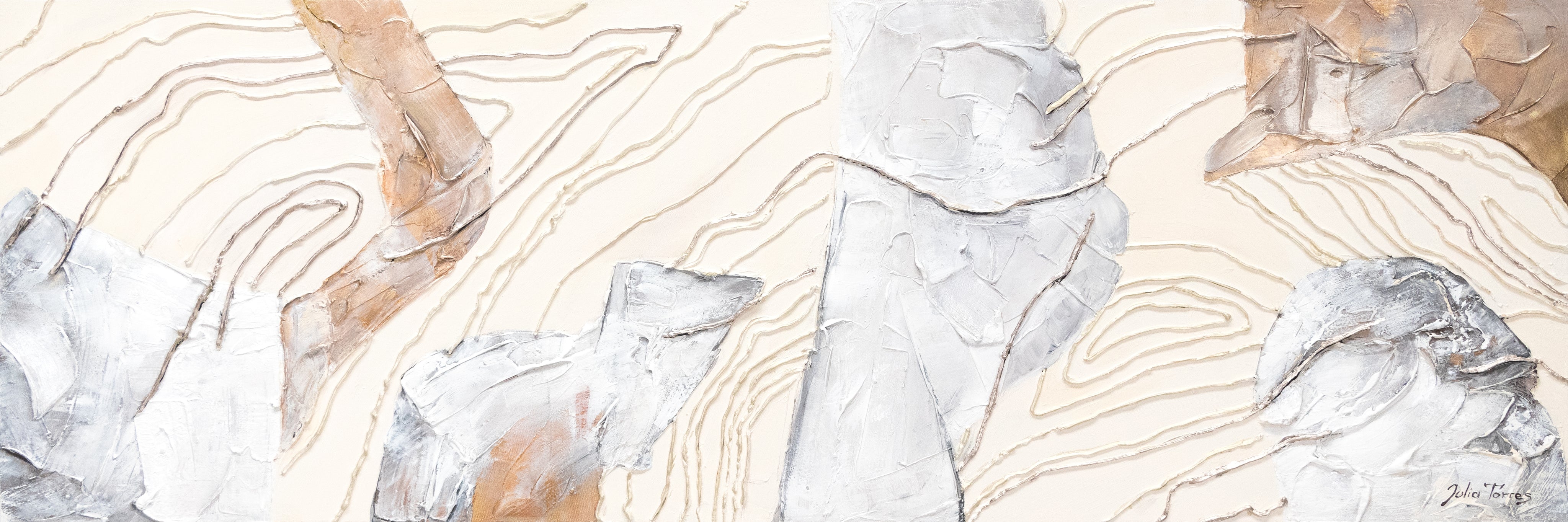 Immerse yourself in the world of abstract art with this stunning hand-painted painting. The delicate lines and soft tones create an elegant and soothing atmosphere that will enhance any room. Every detail of this artwork is 100% handcrafted, making it a unique one-of-a-kind piece. Enjoy free delivery directly to your door.