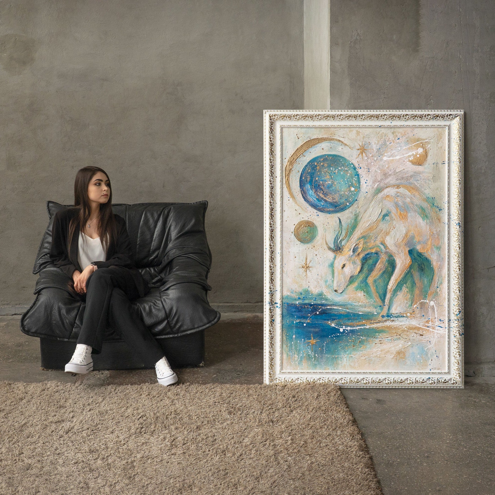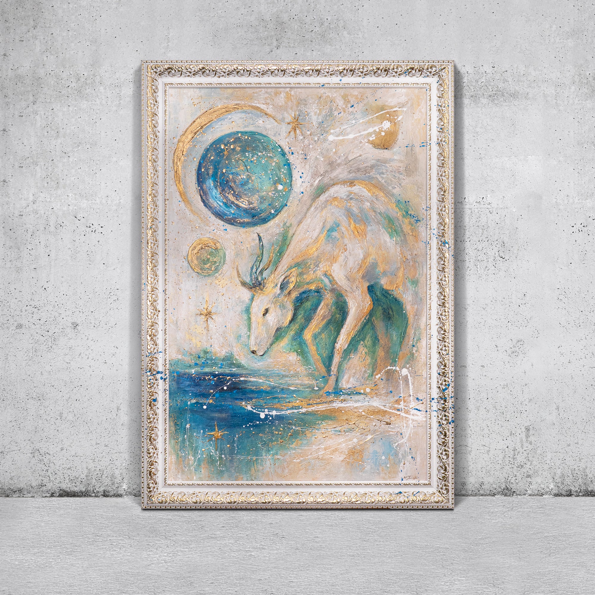 Exclusive Wall Art – Abstract Painting with Deer „Moon Guardian“