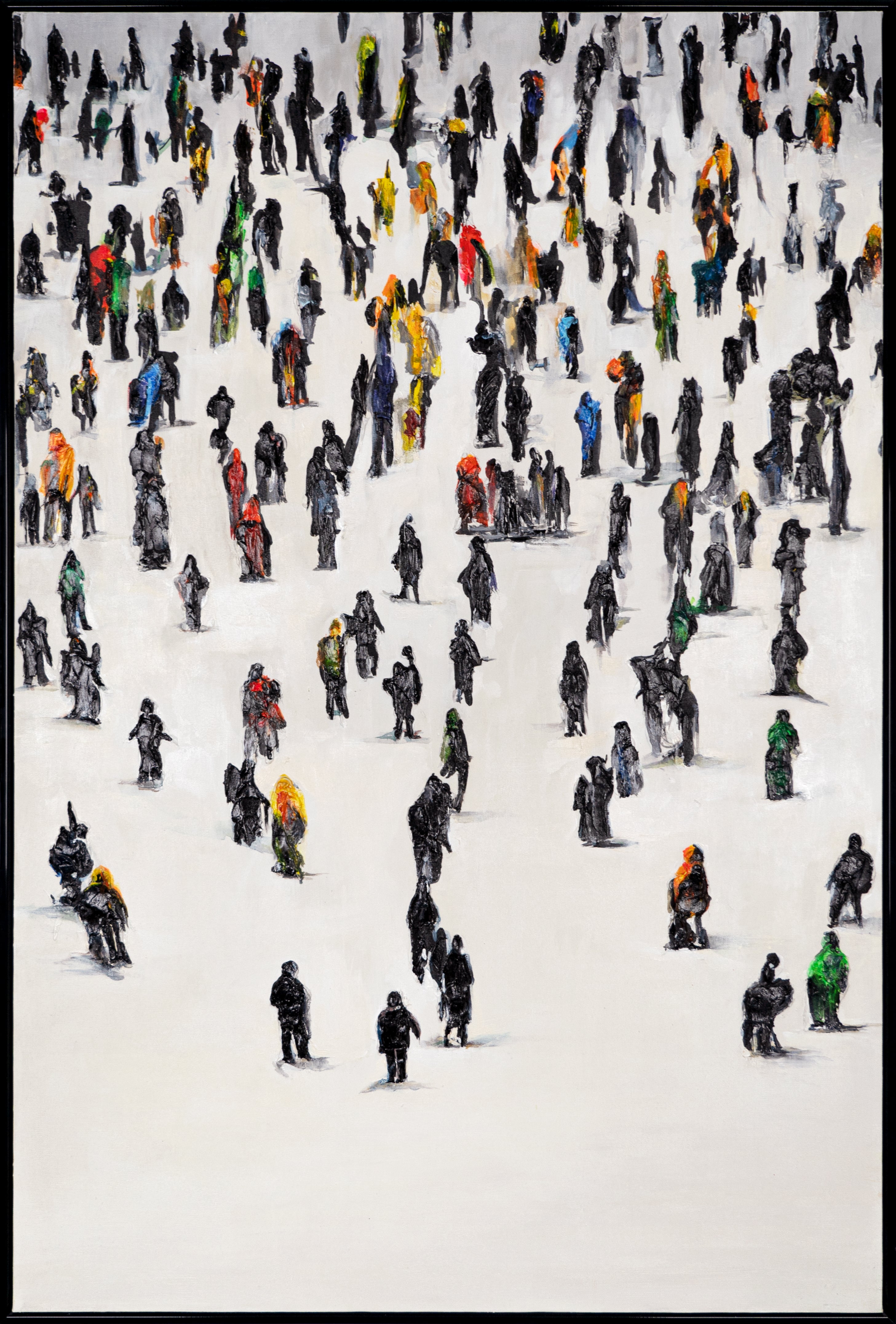 • Wohnzimmer mit großem Bild urbaner Menschenmenge