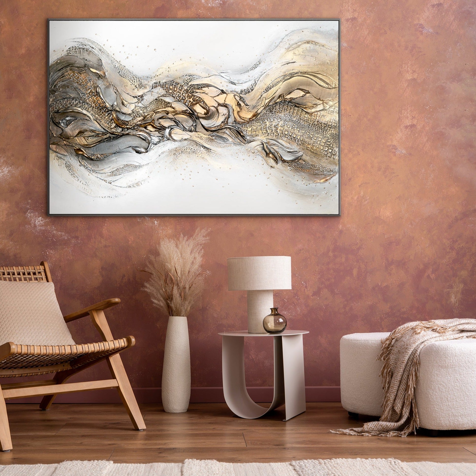• Abstraktes Acrylbild Gold Silber Handgemalt Modern