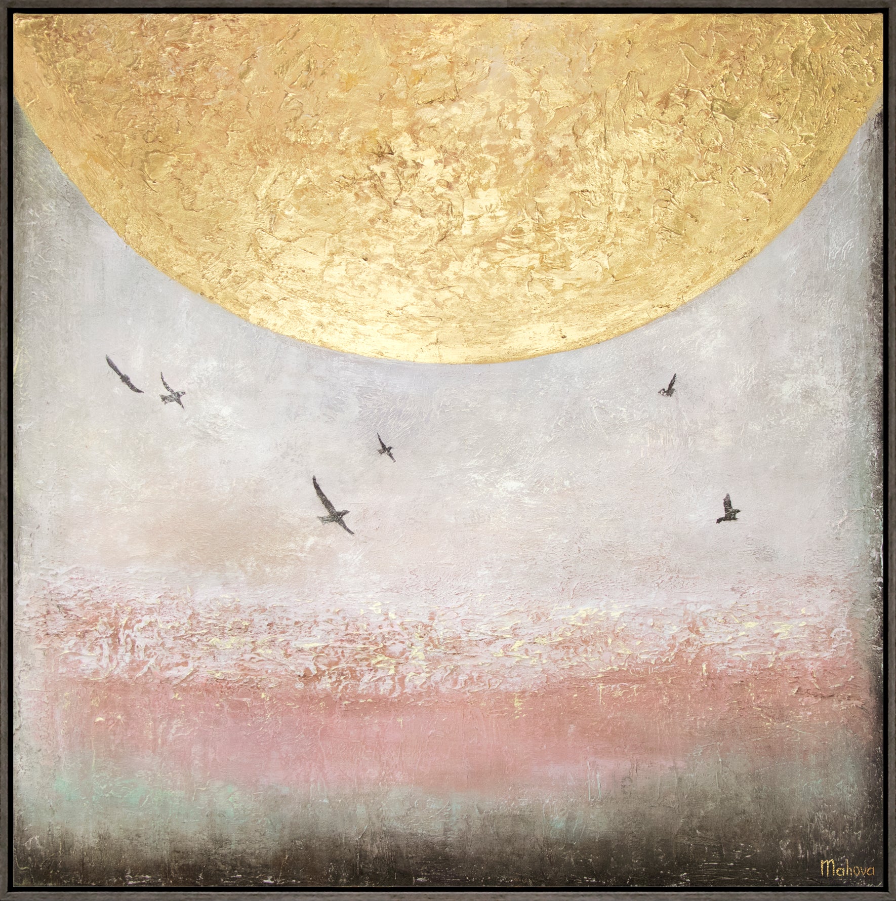 Golden Landscape - Hand-painted acrylic painting with golden accents on canvas