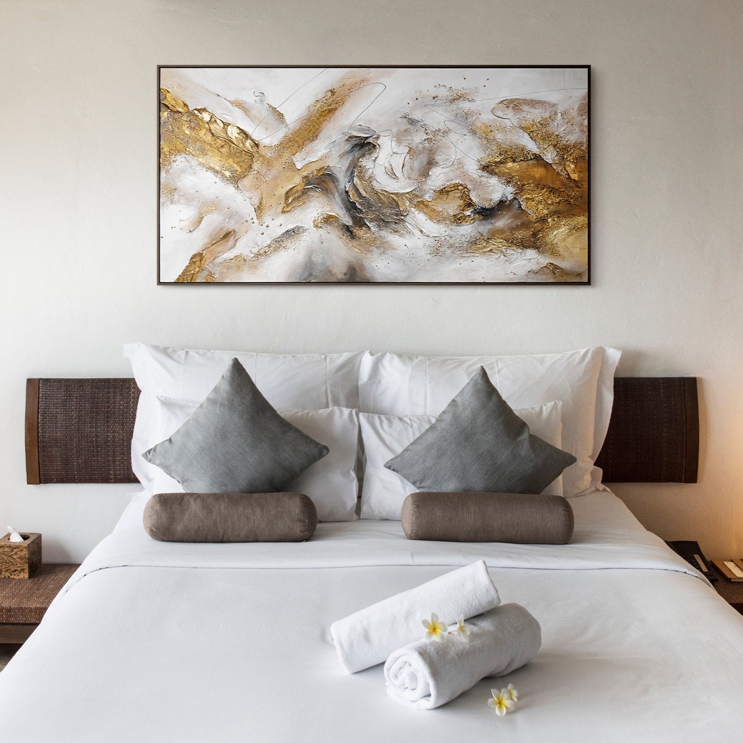"Handmade Painting with Frame 'Consonance' – Abstract Art with Gold"